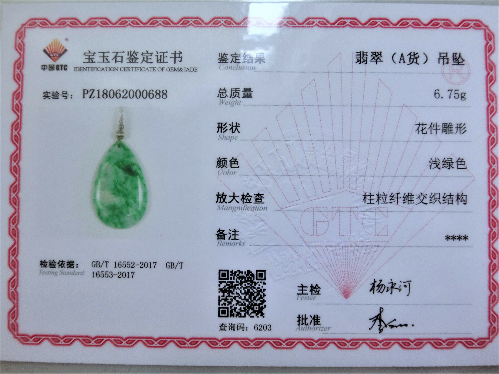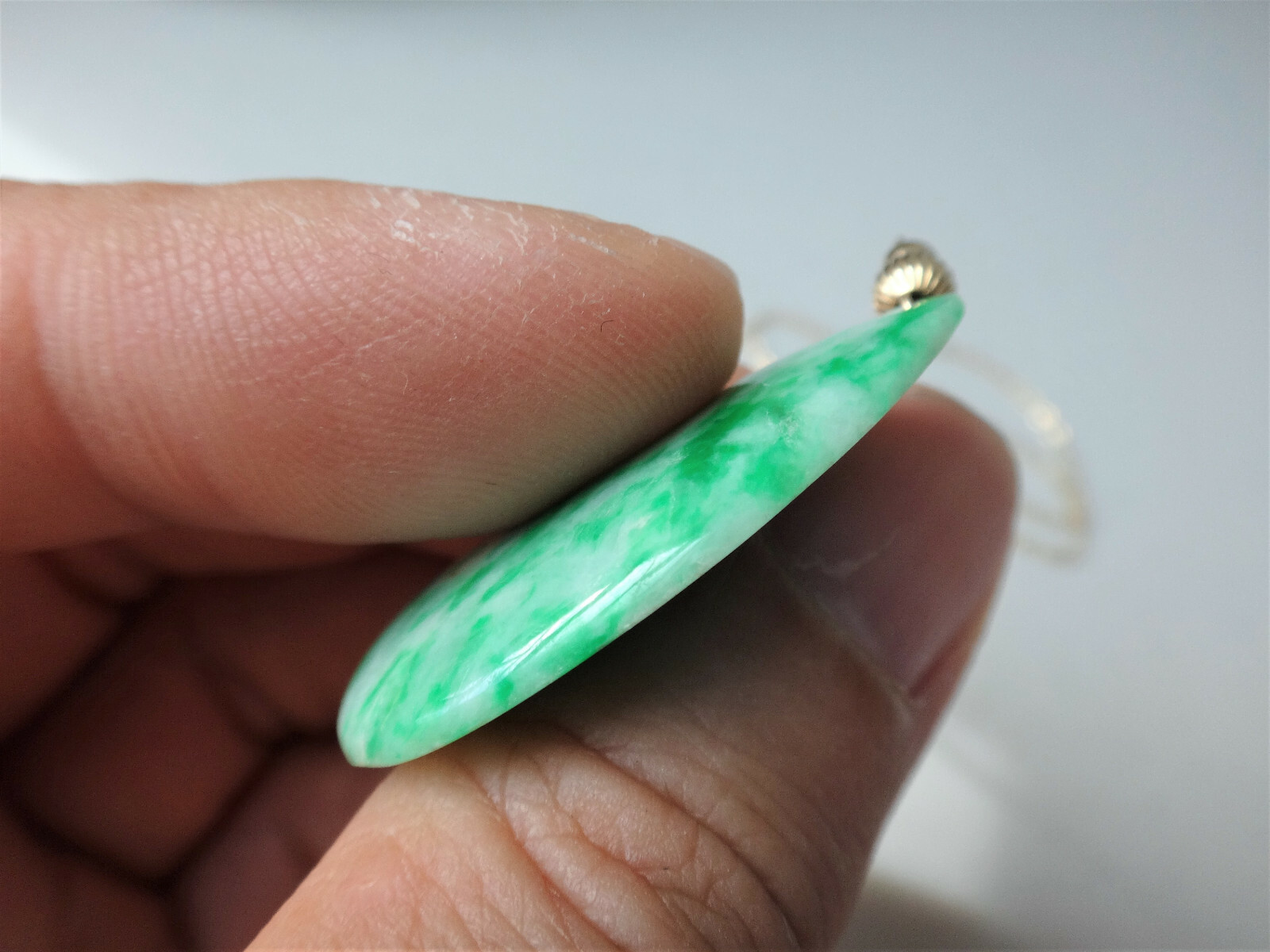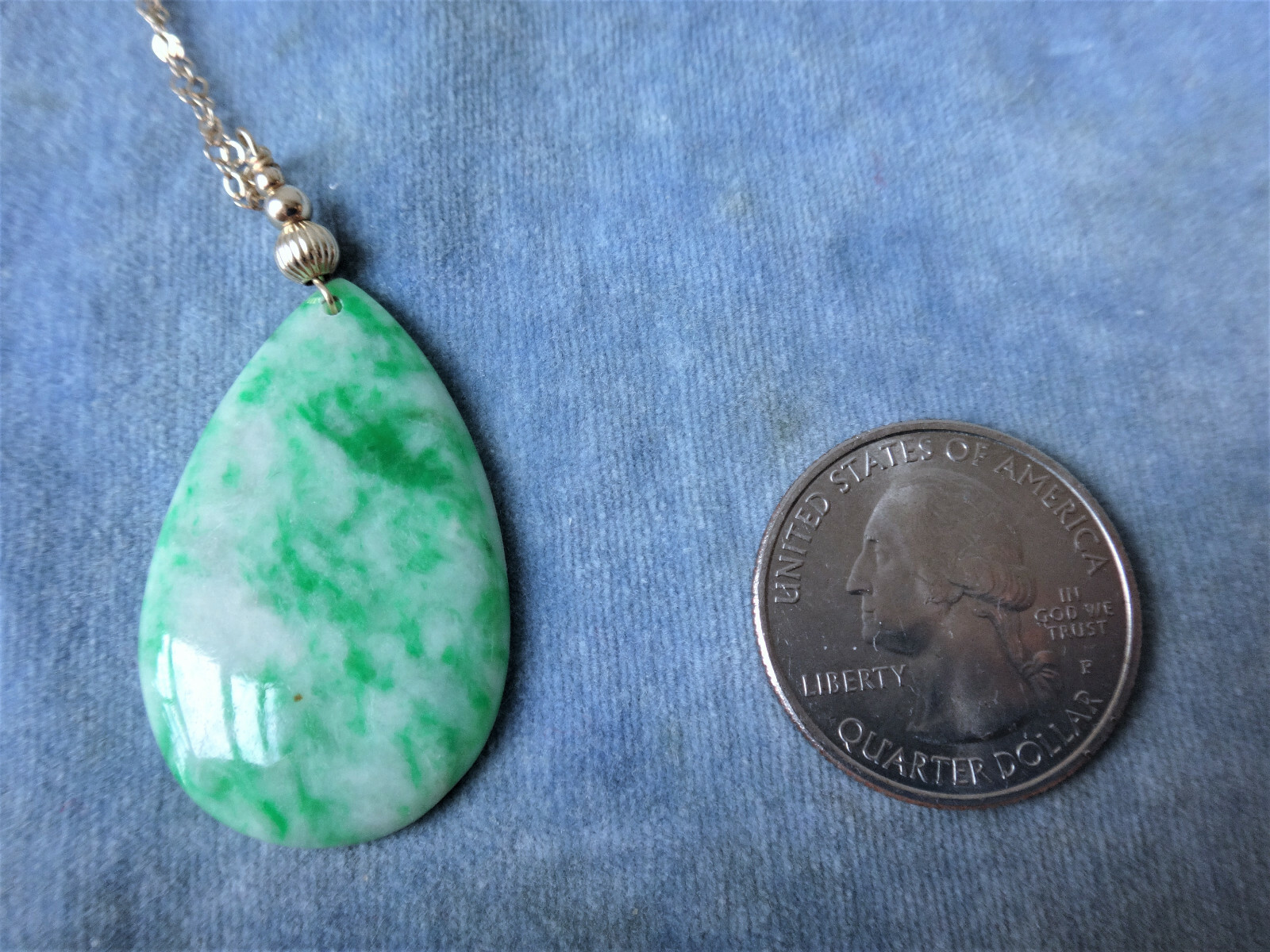 14k Gold Filled A Jadeite Jade Floral Sun Green Teardrop Necklace Pendant