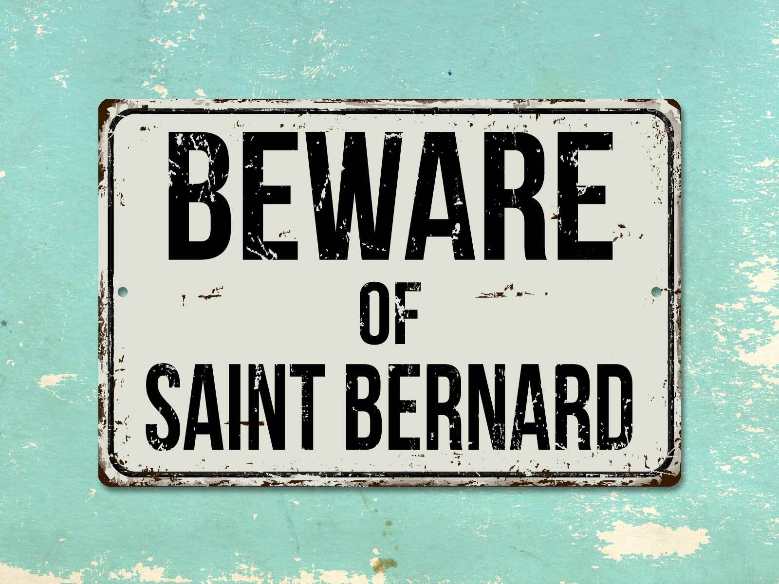 486VS Beware Of Saint Bernard 8 x 12 Vintage Aluminum Retro Metal Sign