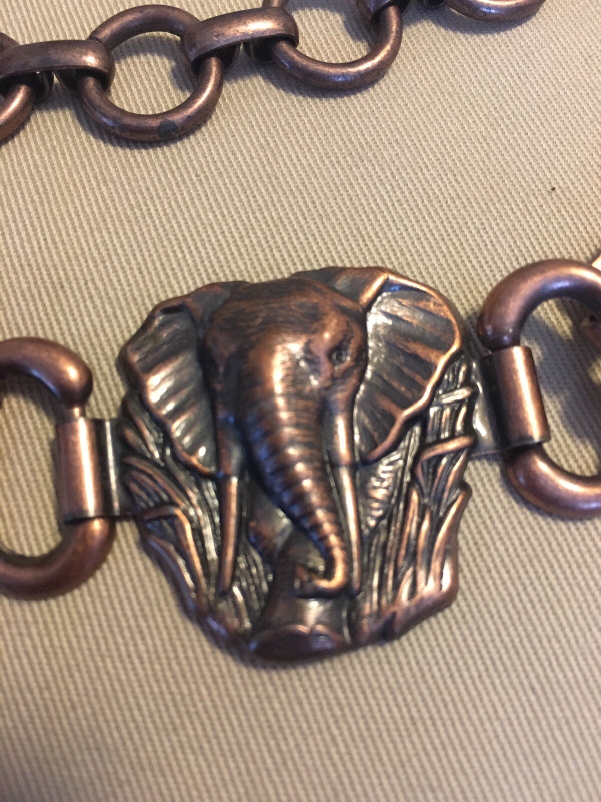 как выглядит Vintage Womens Coppertone Belt With Elephant Heads фото