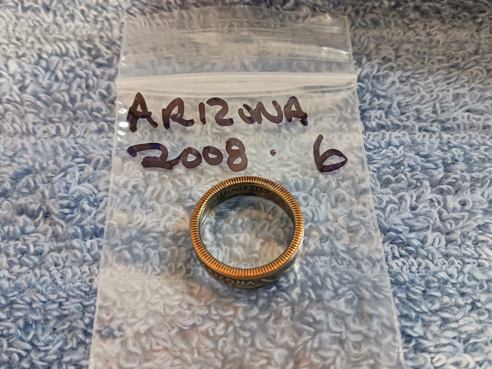 Arizona Handcrafted Washington Quarters coin ring, size 6 2008