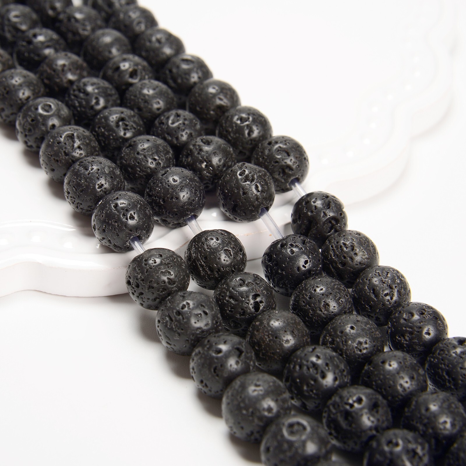 как выглядит 2.0mm Hole Black Lava Rock Stone Round Beads 6mm 8mm 10mm 12mm 15.5" Strand фото