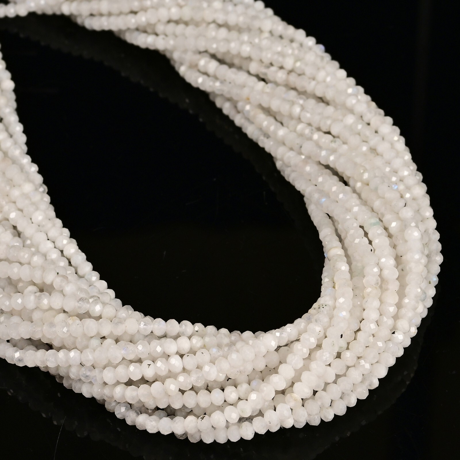 White Rainbow Moonstone Faceted Rondelle Beads 2x3mm 3x4mm 3x5mm 15.5 Strand