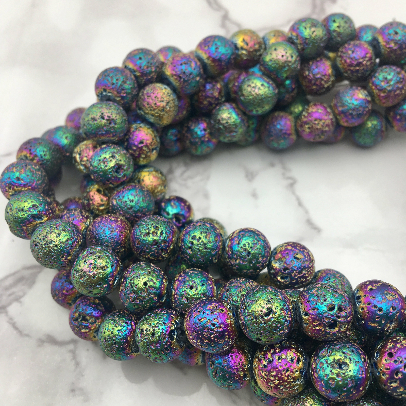 Rainbow Coated Lava Rock Stone Beads 6mm 8mm 10mm 15.5 Strand