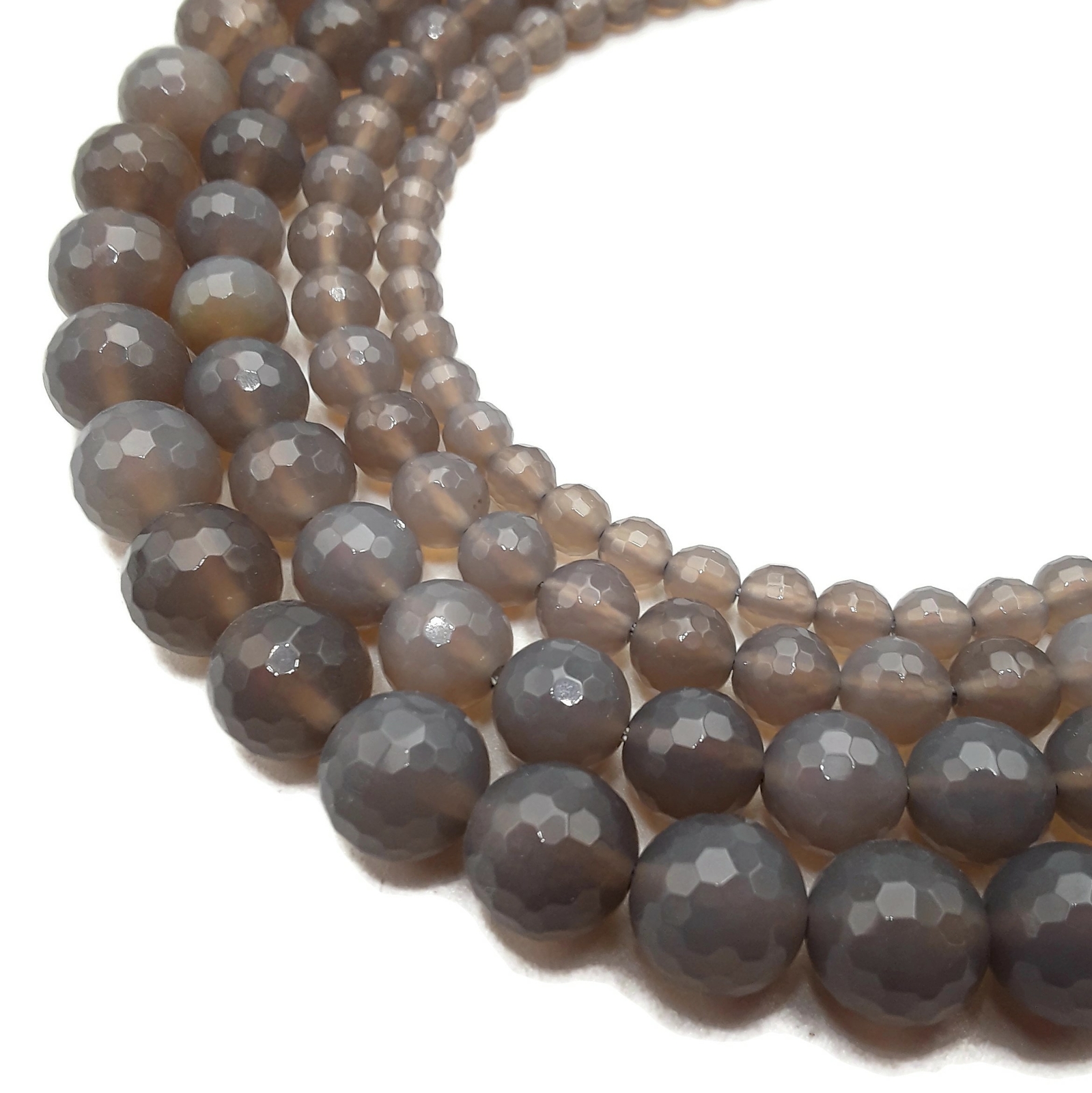 Gray Agate Faceted Round Beads 4mm 6mm 8mm 10mm 12mm Approx 15.5 Strand