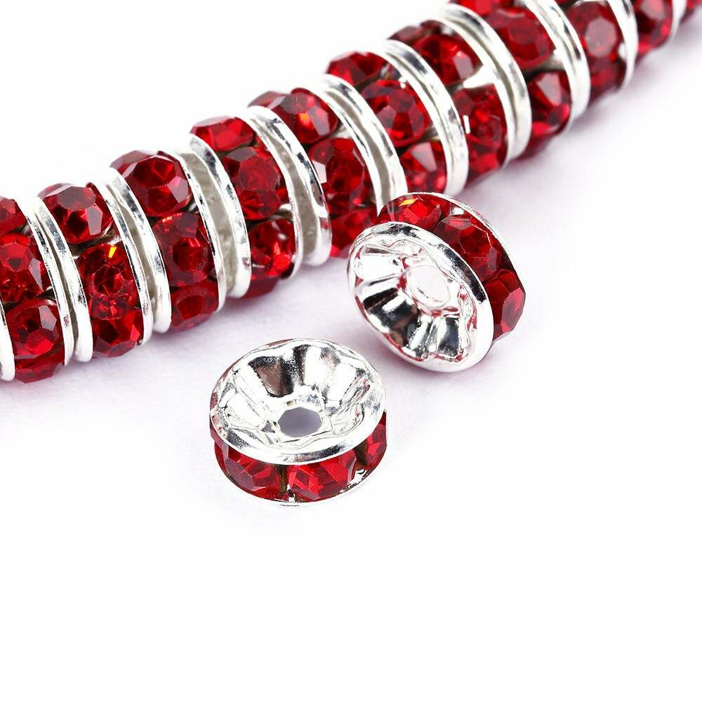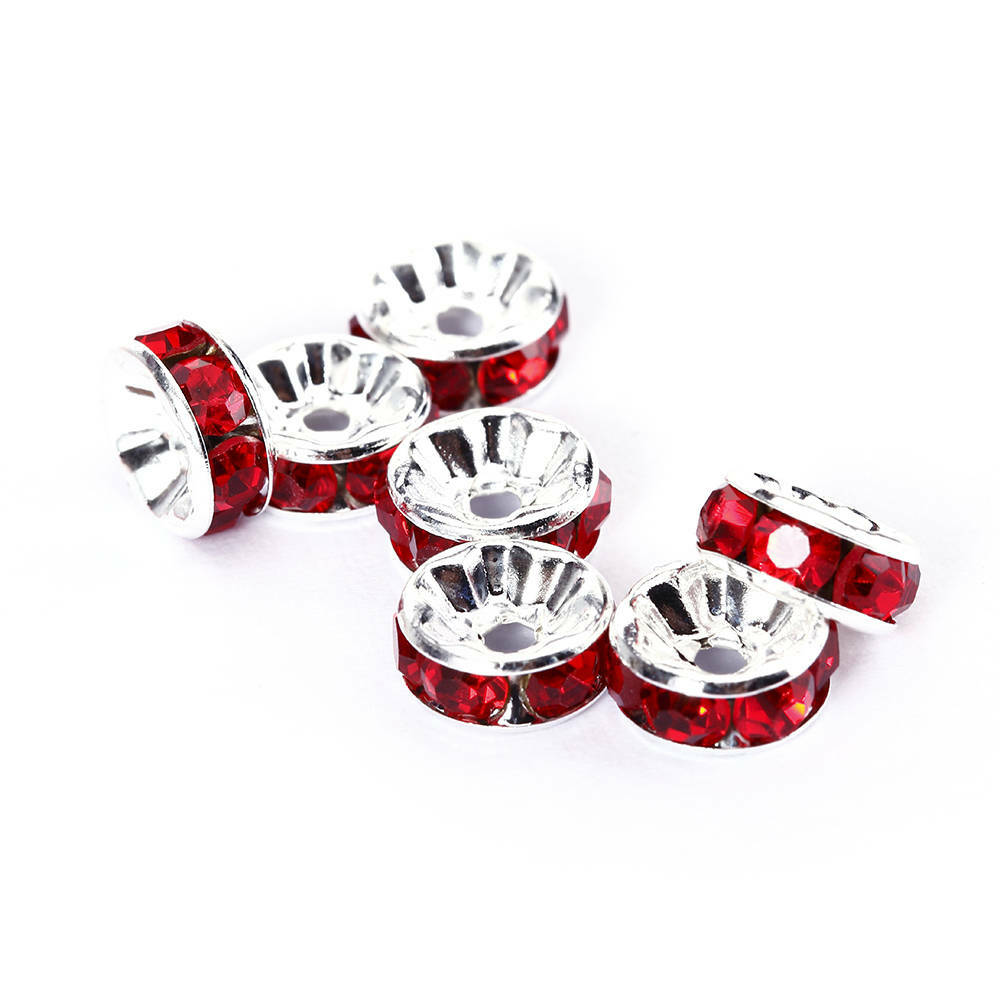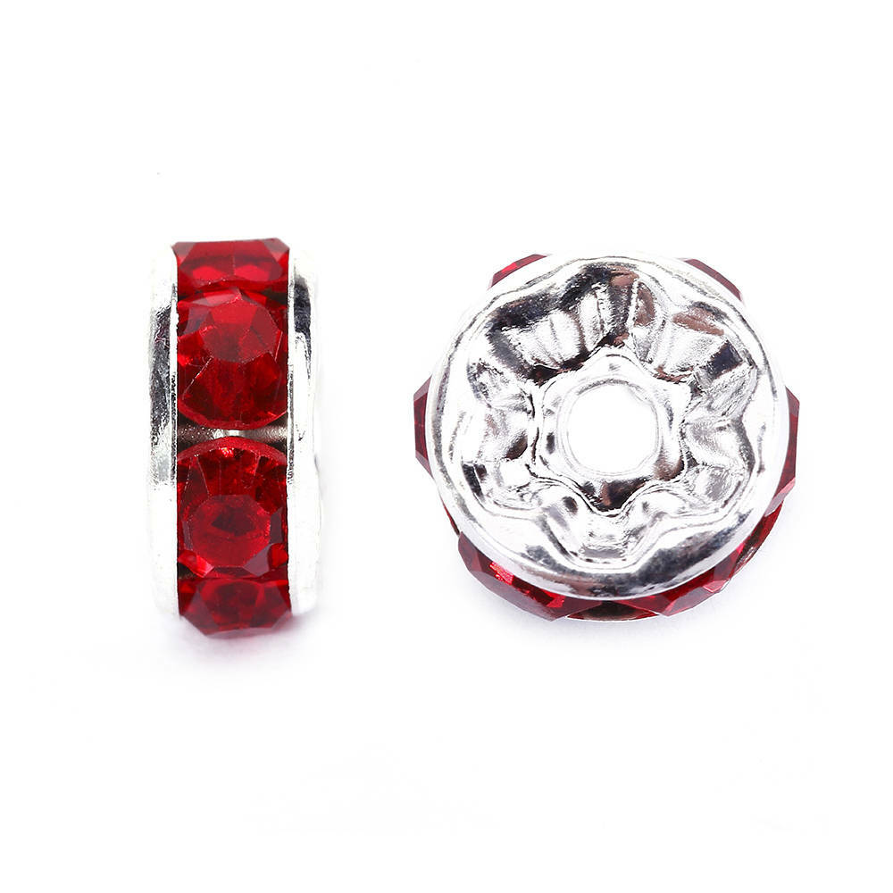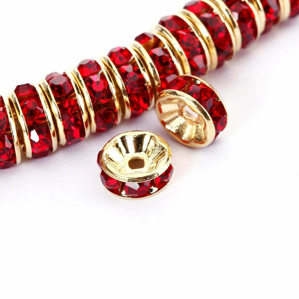 Red Rhinestone Rondelle Spacers Gold/Silver 4mm 6mm 8mm 10mm 50pcs Per Bag