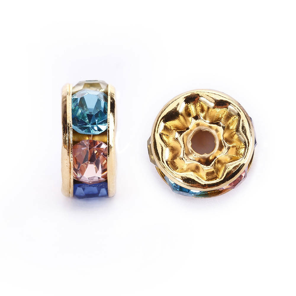 Rainbow Rhinestone Rondelle Spacers Gold/Silver 4mm 6mm 8mm 10mm 50pcs Per Bag