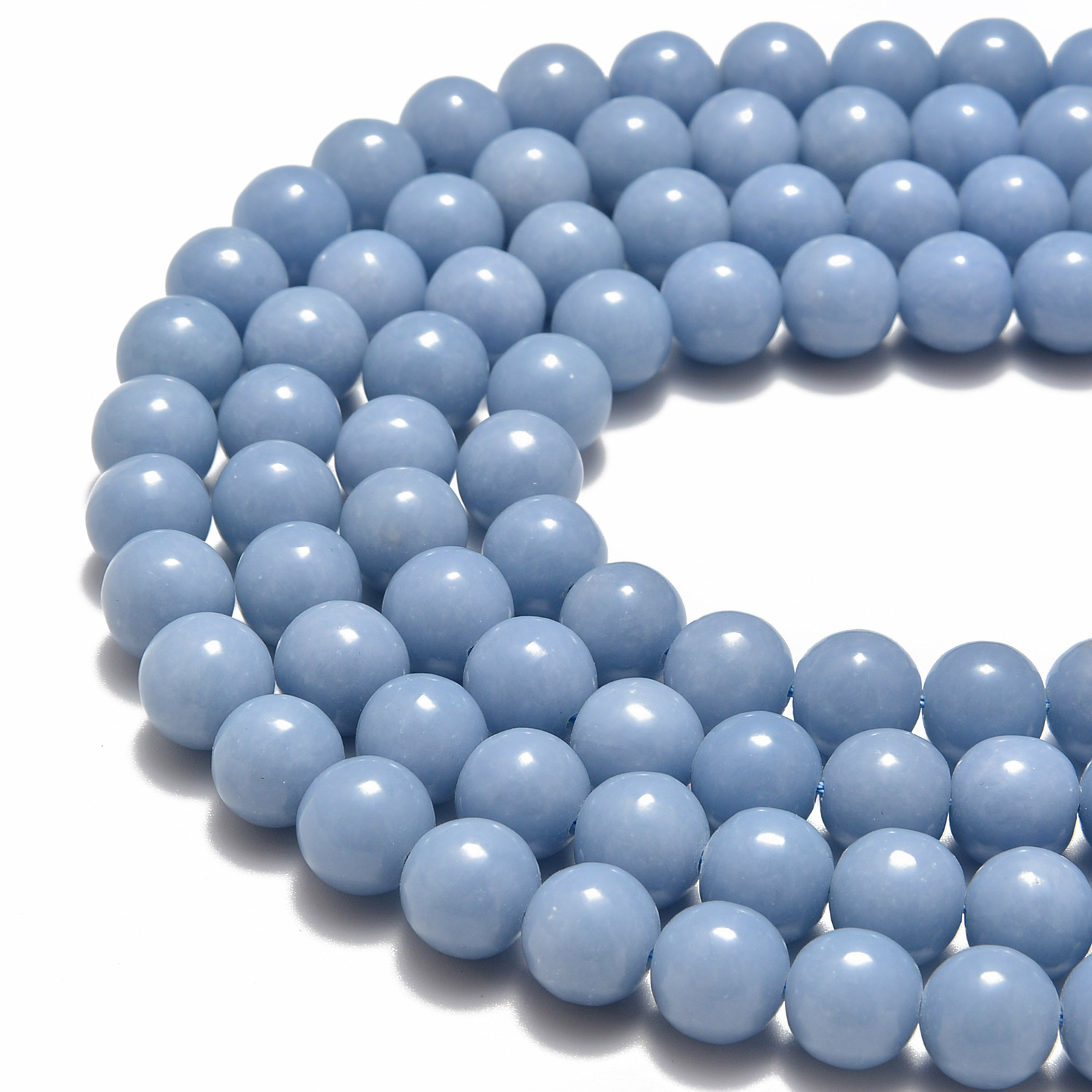 как выглядит Natural Angelite Smooth Round Beads 4mm 6mm 8mm 10m 12mm 15.5" Strand фото