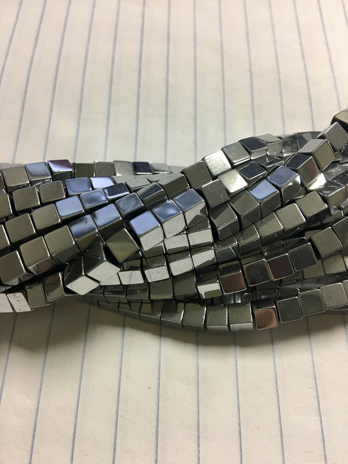 как выглядит Silver Plated Hematite Smooth Cube Beads 4x4mm 15.5" Strand фото