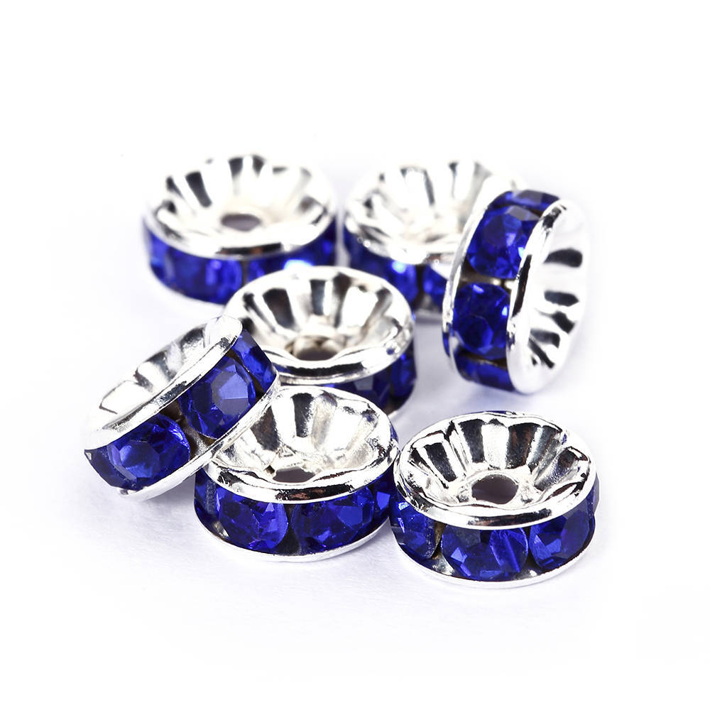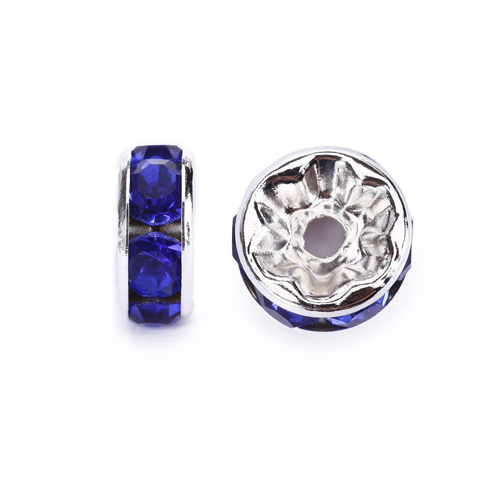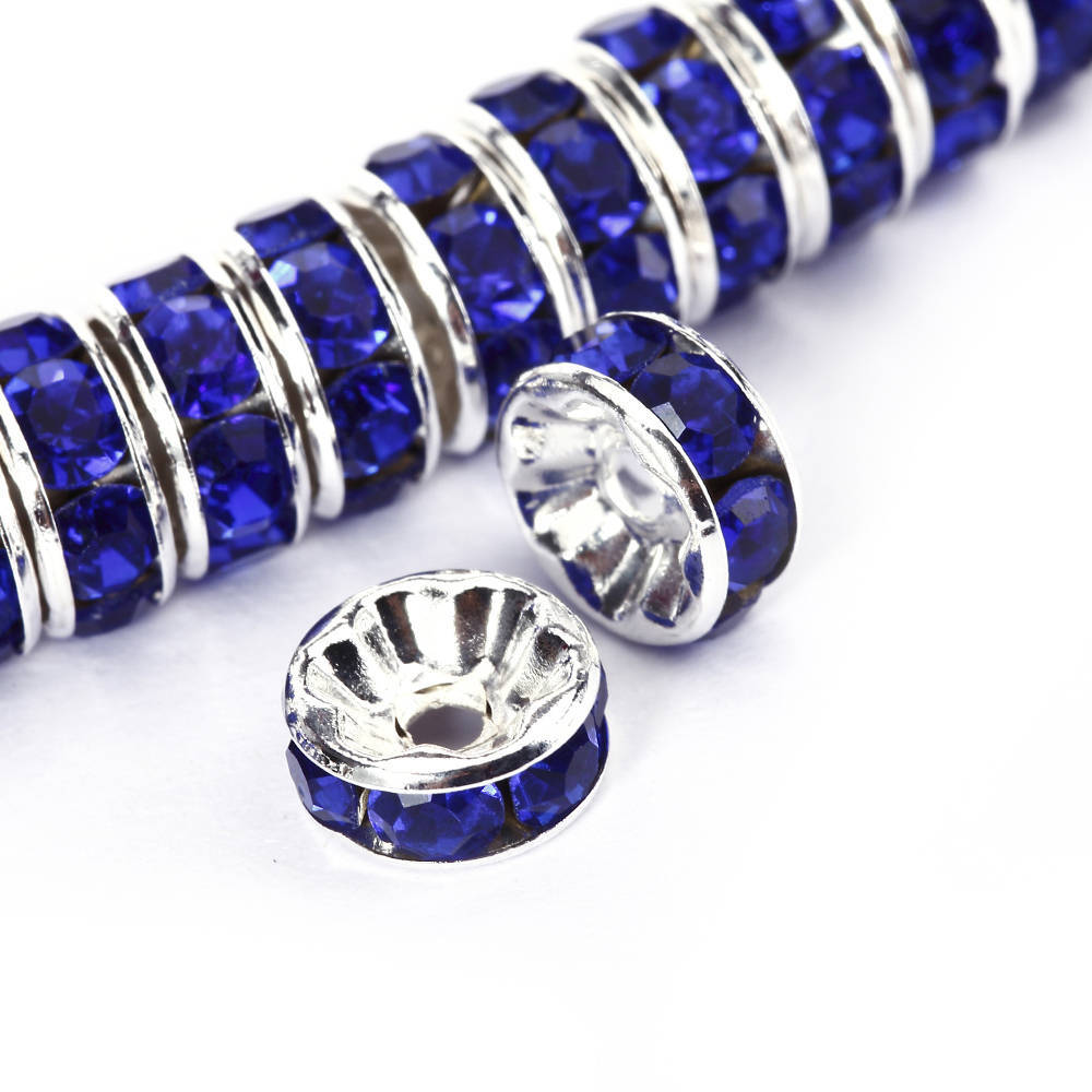 как выглядит Dark Blue Rhinestone Rondelle Spacers Gold/Silver 4mm 6mm 8mm 10mm 50pcs Per Bag фото
