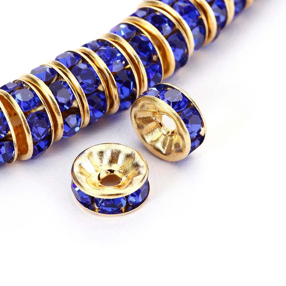 Dark Blue Rhinestone Rondelle Spacers Gold/Silver 4mm 6mm 8mm 10mm 50pcs Per Bag