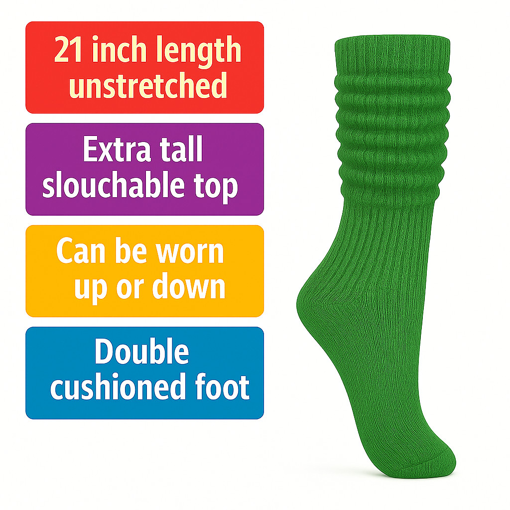 Women s Slouch Socks 3 Pair Cotton Knee High Scrunch Boot Socks Retro 80s Cozy
