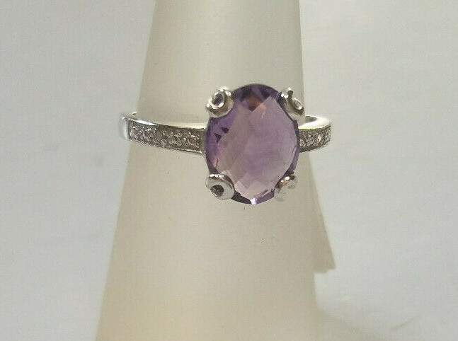 Genuine 925 Sterling Silver Purple Amethyst Gemstone Ring Size 7 NEW