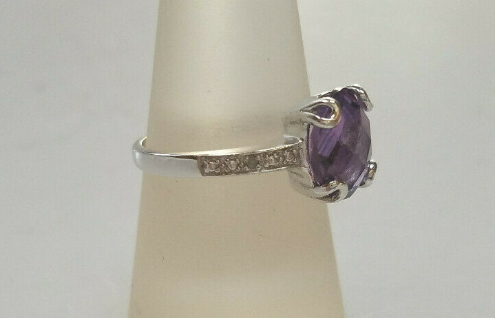 как выглядит Genuine 925 Sterling Silver Purple Amethyst Gemstone Ring Size 7 NEW фото