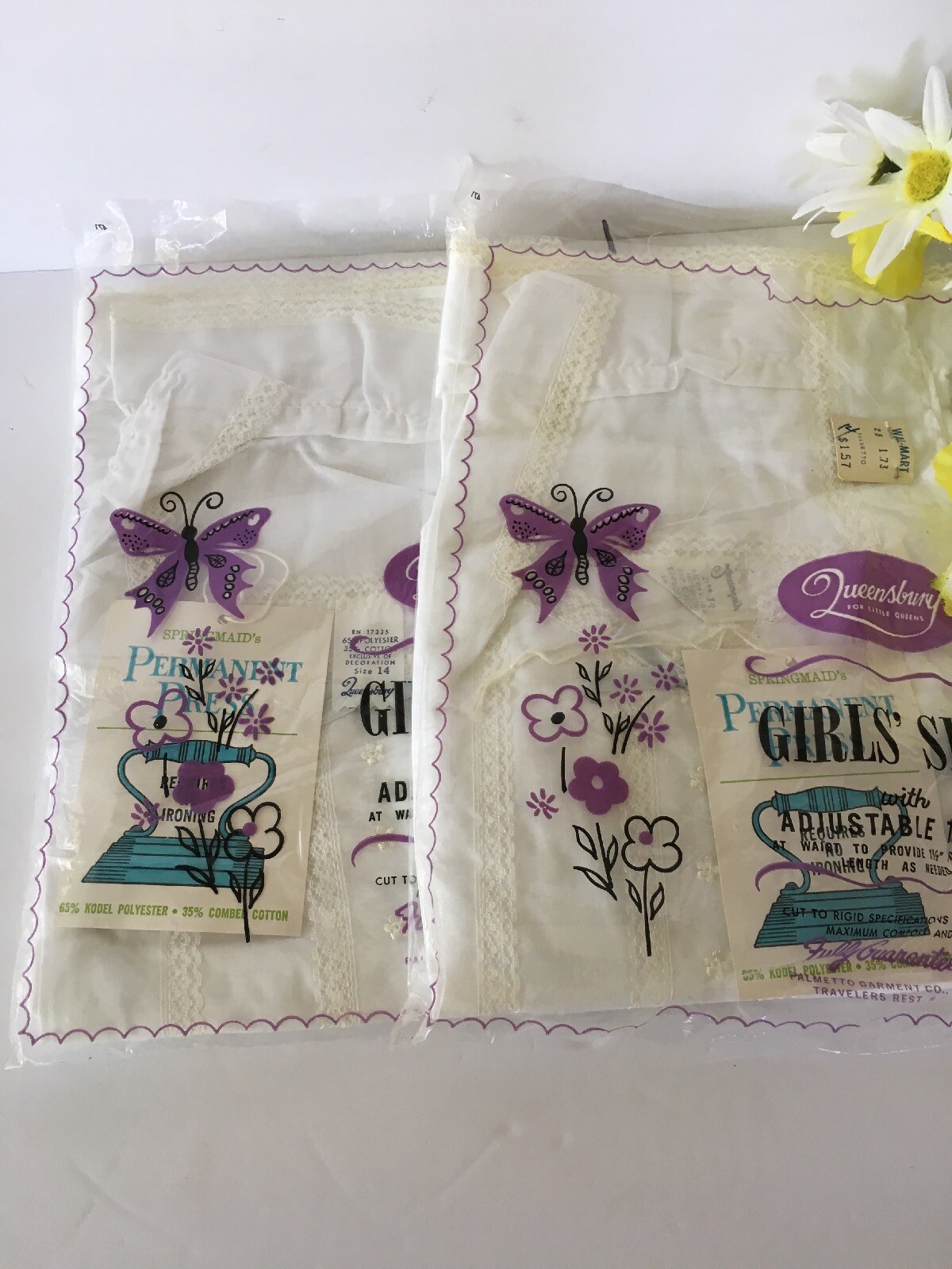 2 Vintage Queensbury White Girls Slips Size 14 New/Old Stock Original Price Tag