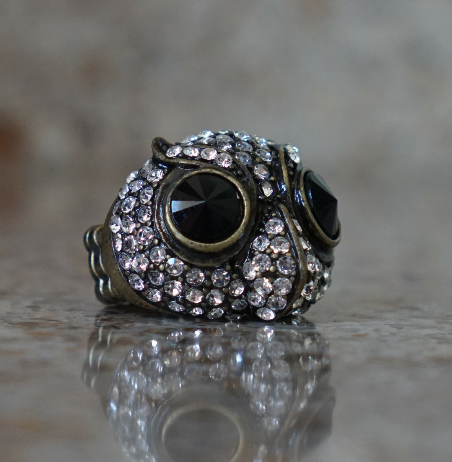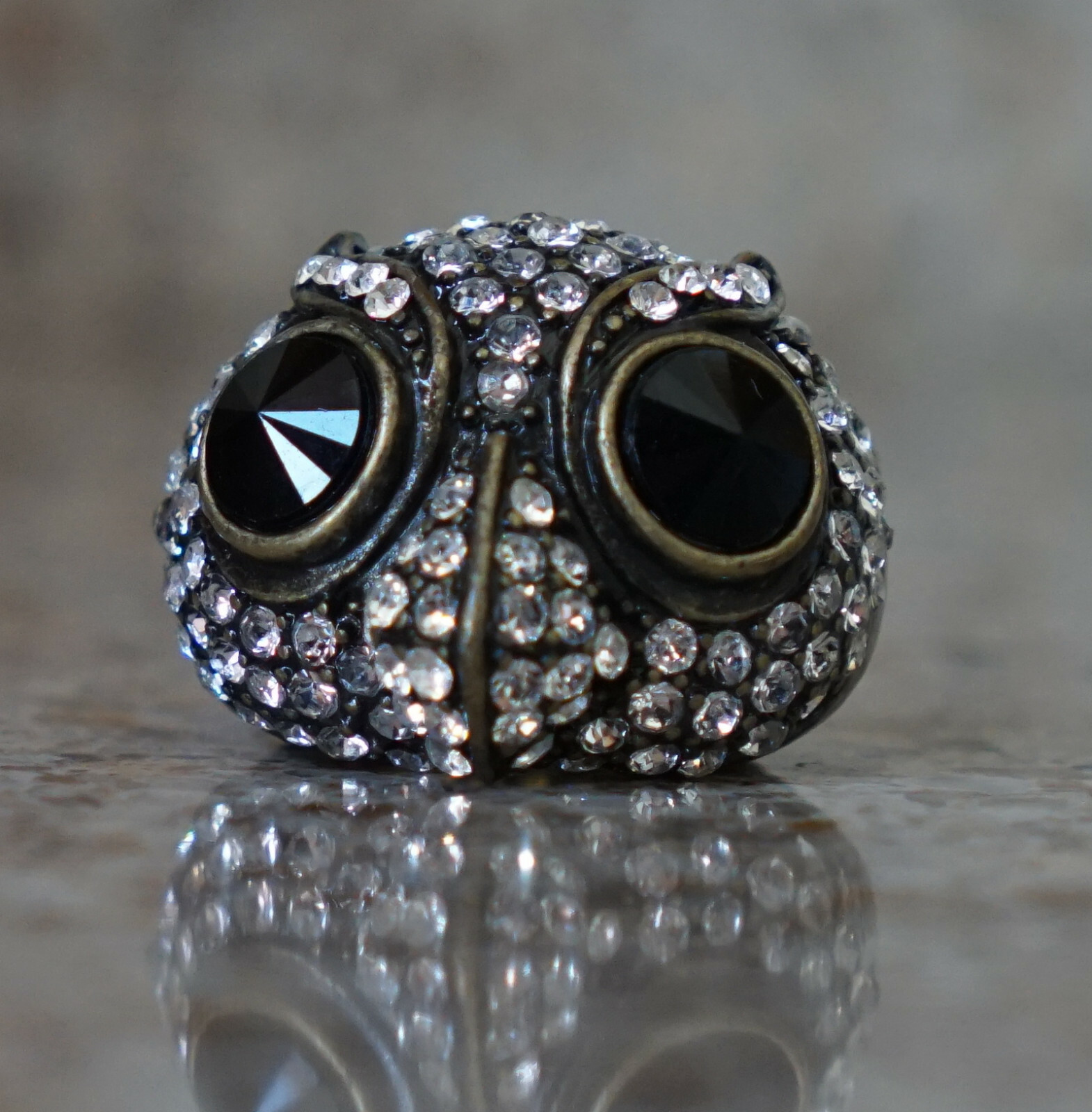 как выглядит Womens Metal Owl Ring - Rhinestones Novelty Stretchy Band Black Eyes One Size фото