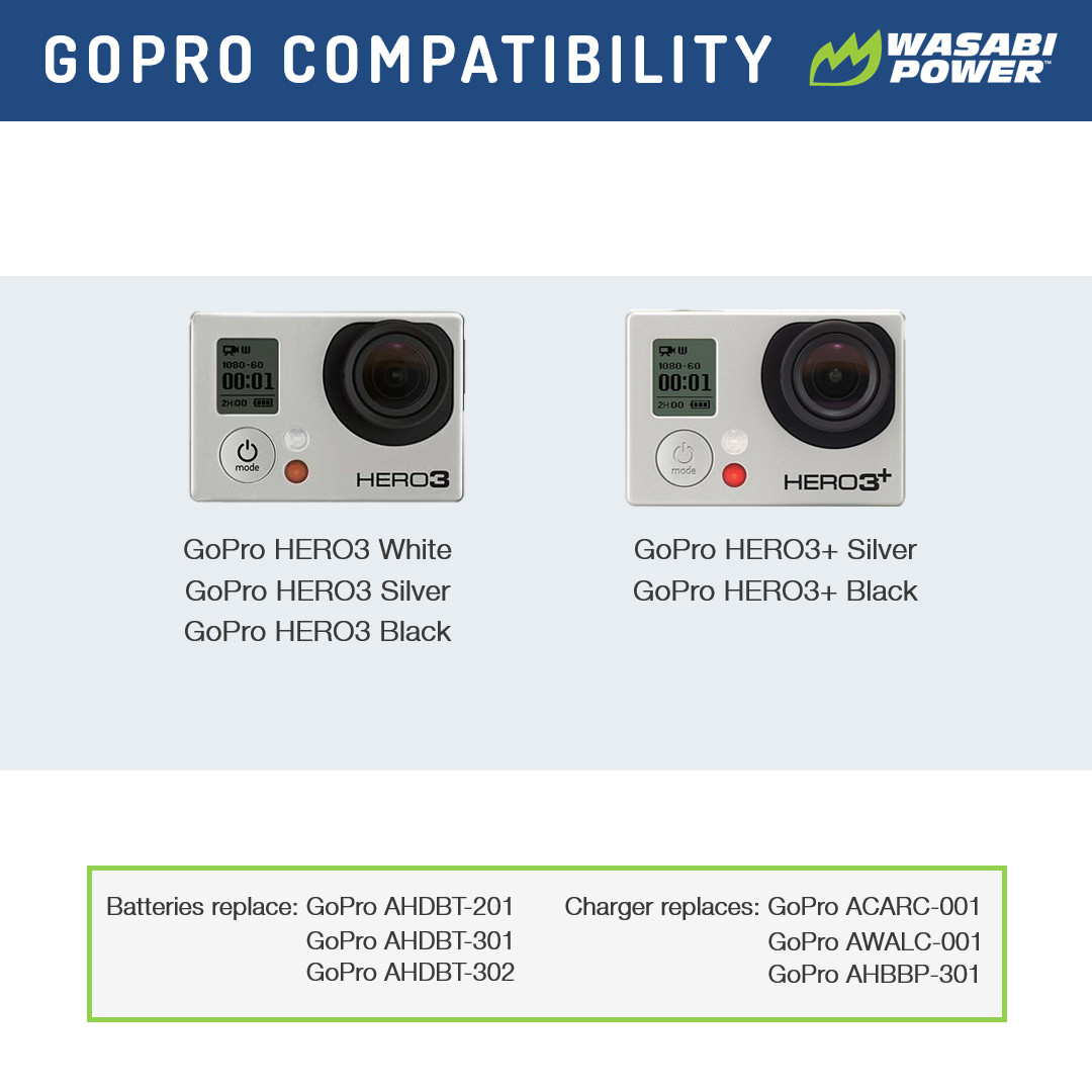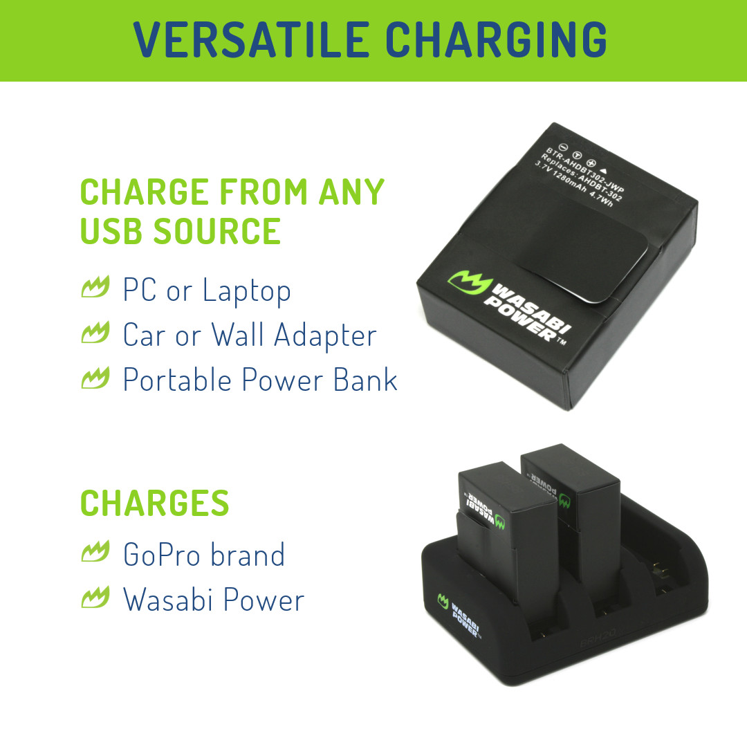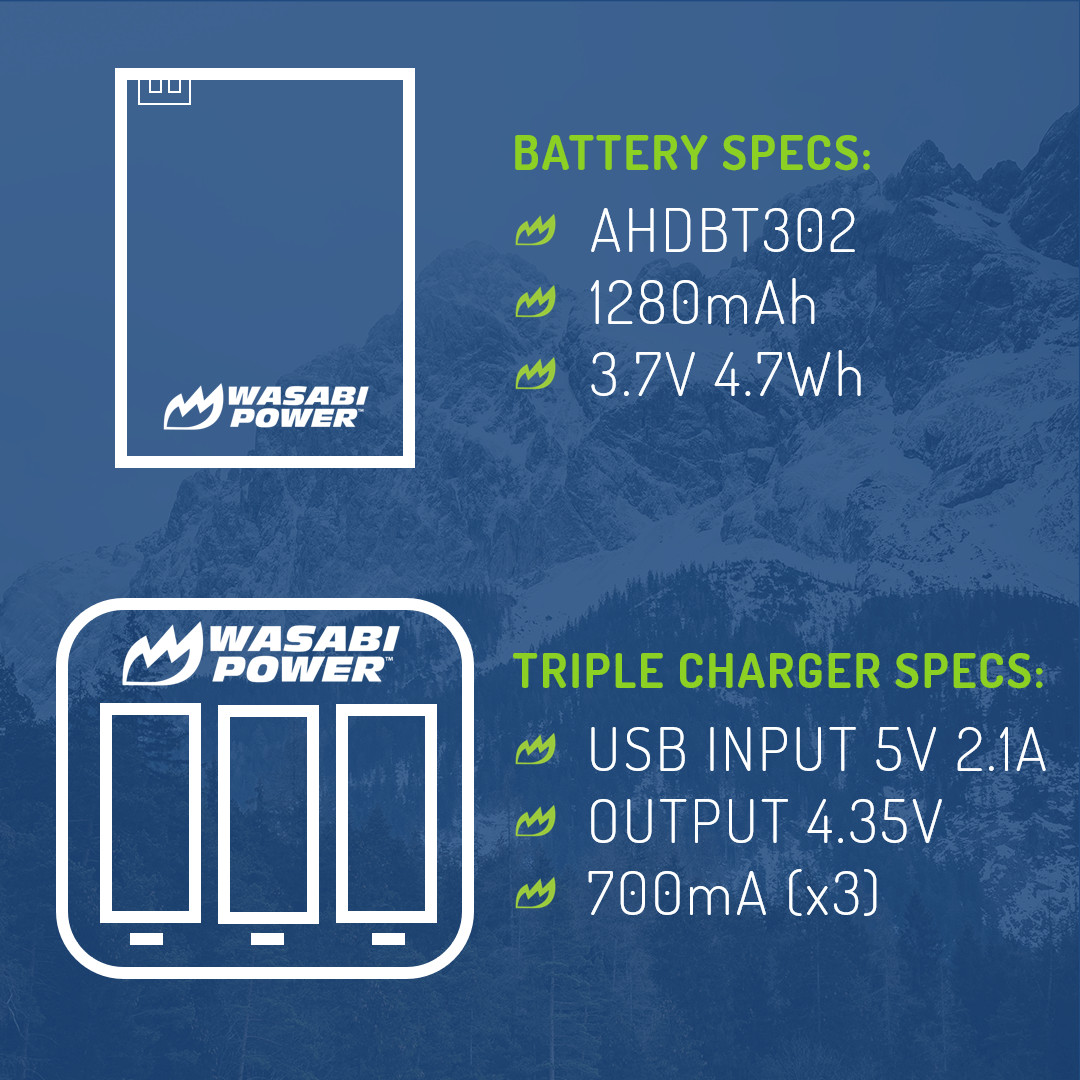Wasabi Power Battery 2-Pack, 1280mAh and Triple Charger for GoPro HERO3,