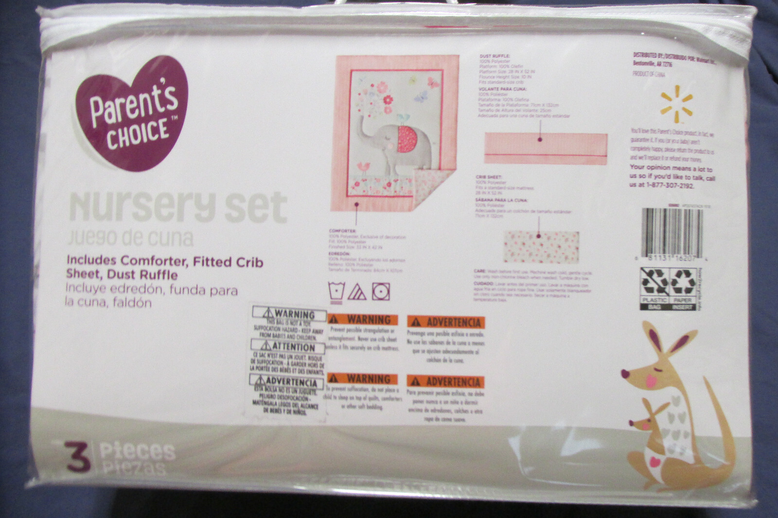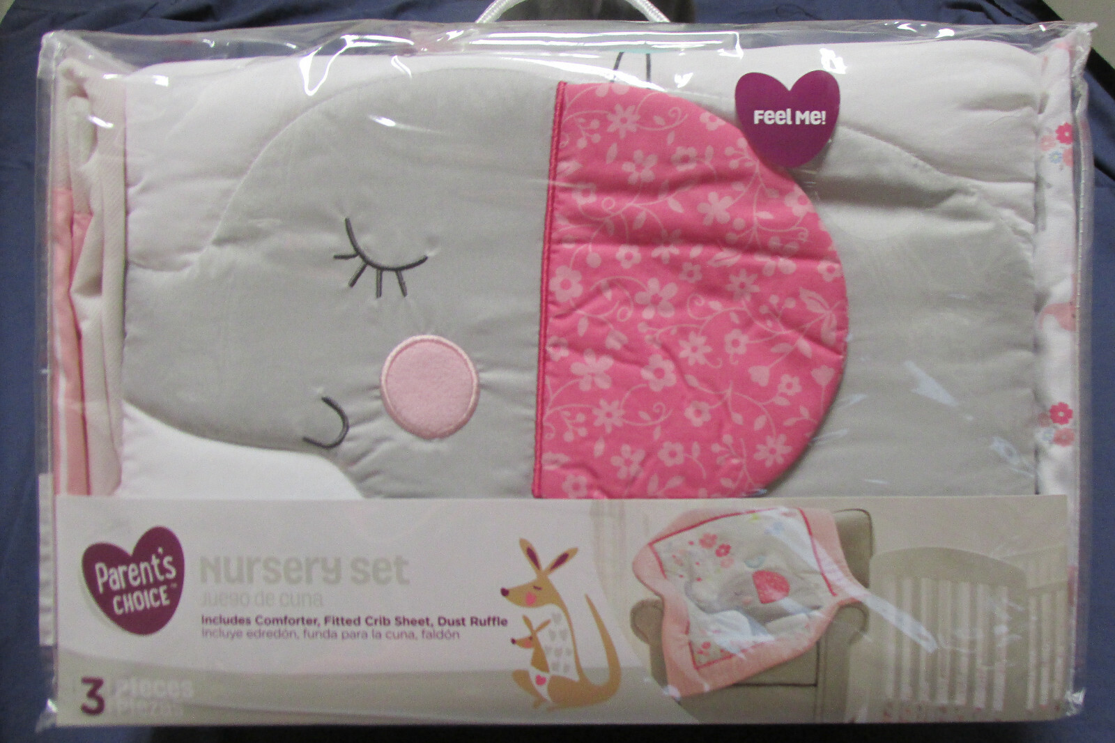 New Baby Girl 's Bedding Nursery Set Comforter Fitted Sheet Dust Ruffle Pink NIP