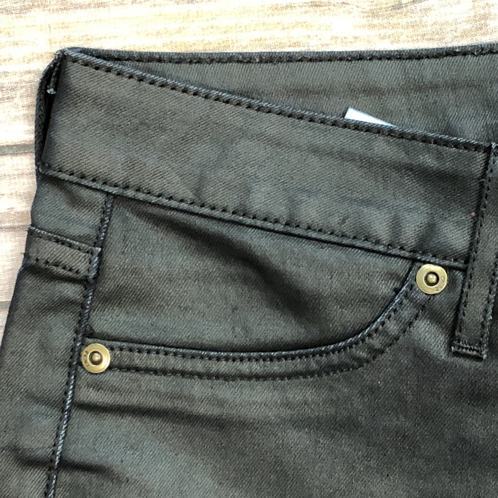 158 Cache Women s 8 Mid Rise Black Coated Skinny Denim Dark Wash Jeans Medium