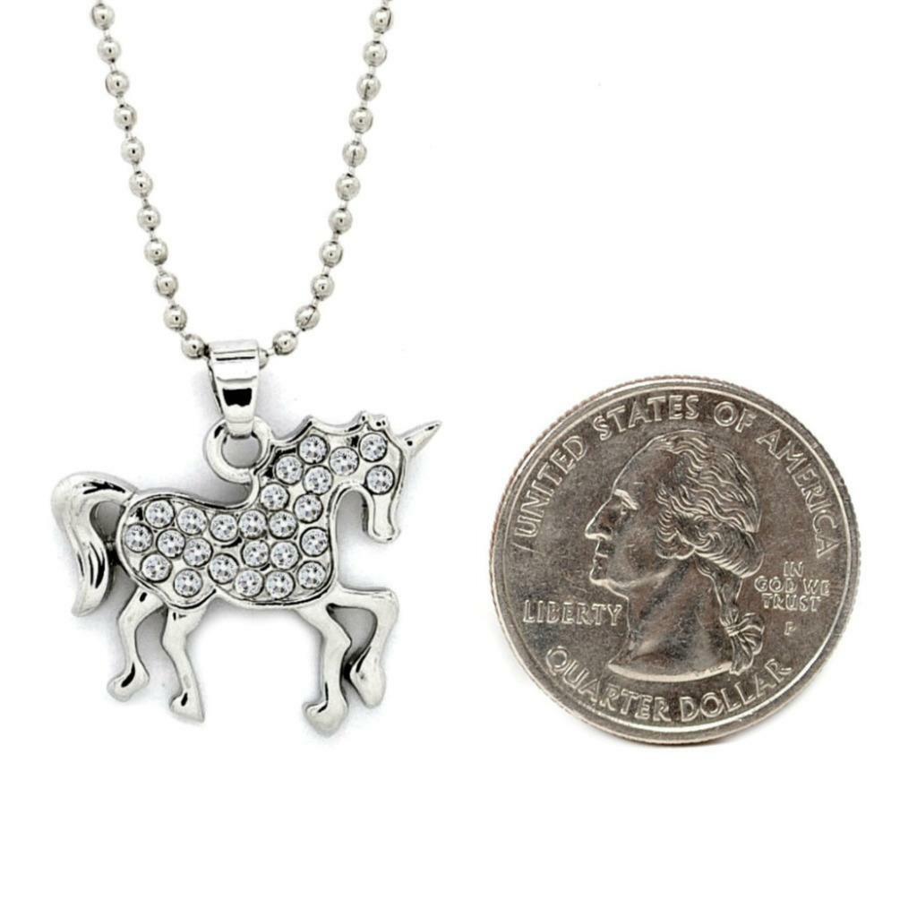 как выглядит SPARKLING UNICORN NECKLACE 1" Charm 17" Ball Chain Crystal Pendant Bling Jewelry фото