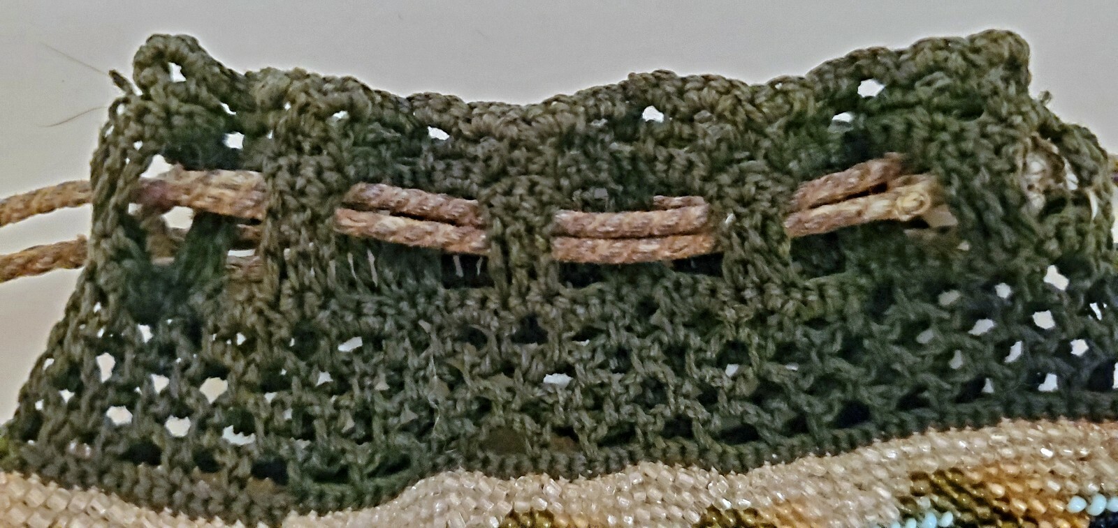 как выглядит Antique Victorian Crochet Rose Floral Micro Bead Drawstring Purse Excellent фото