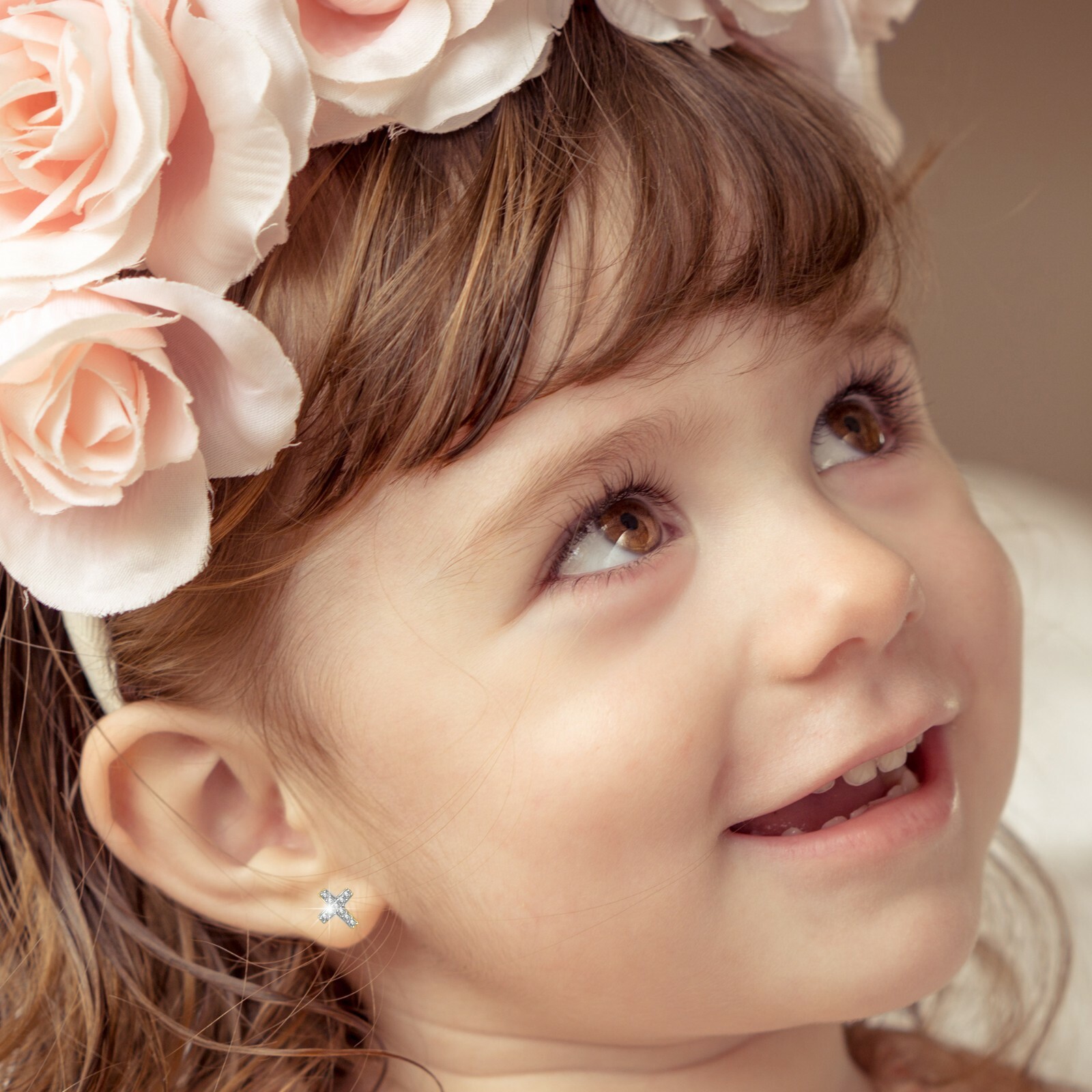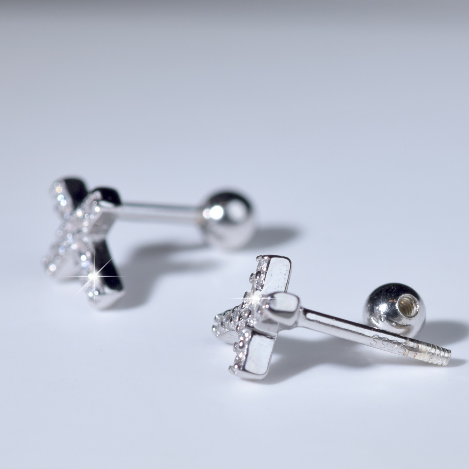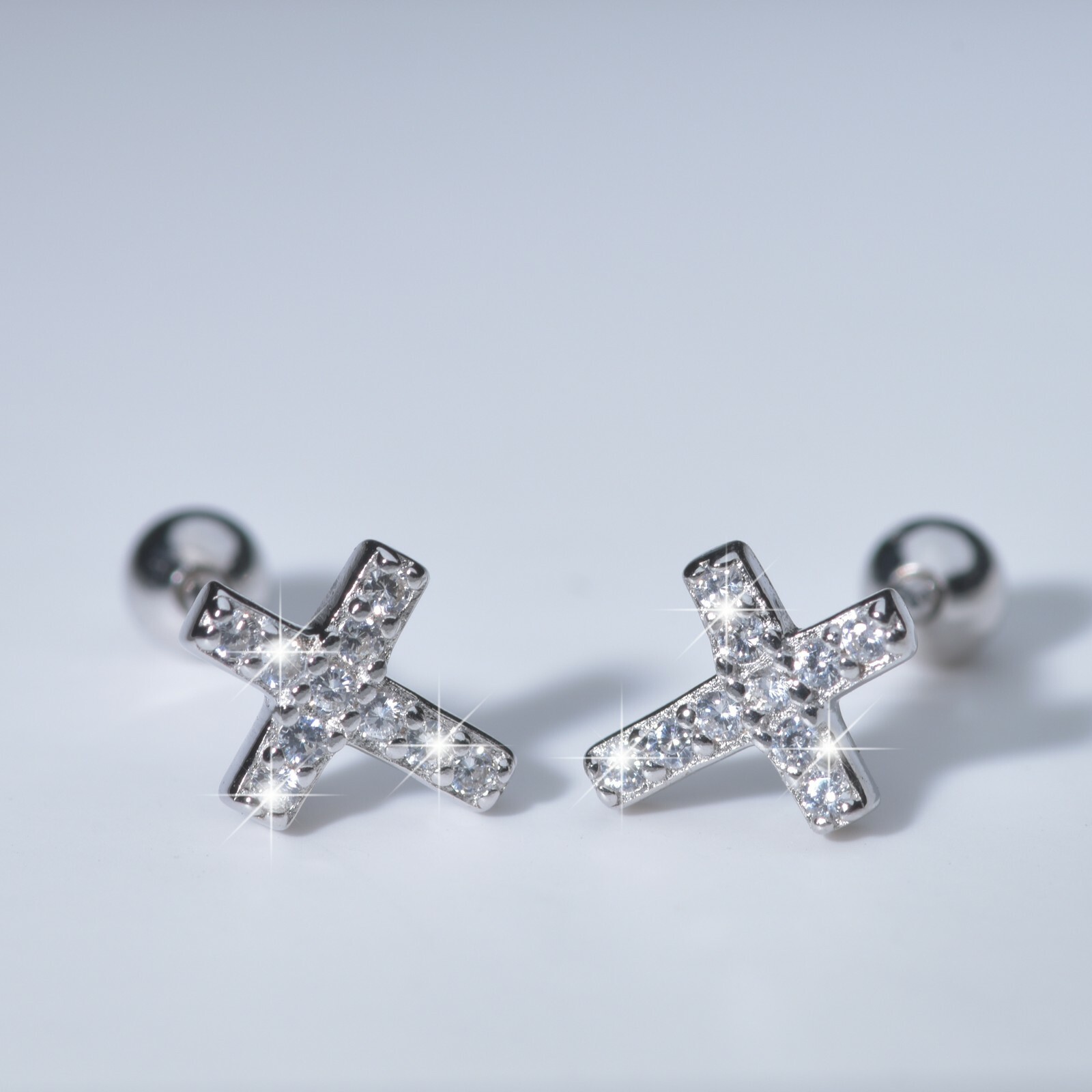 925 sterling silver cz stud Screw back baby kids cross earrings helix tragus