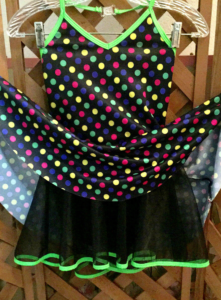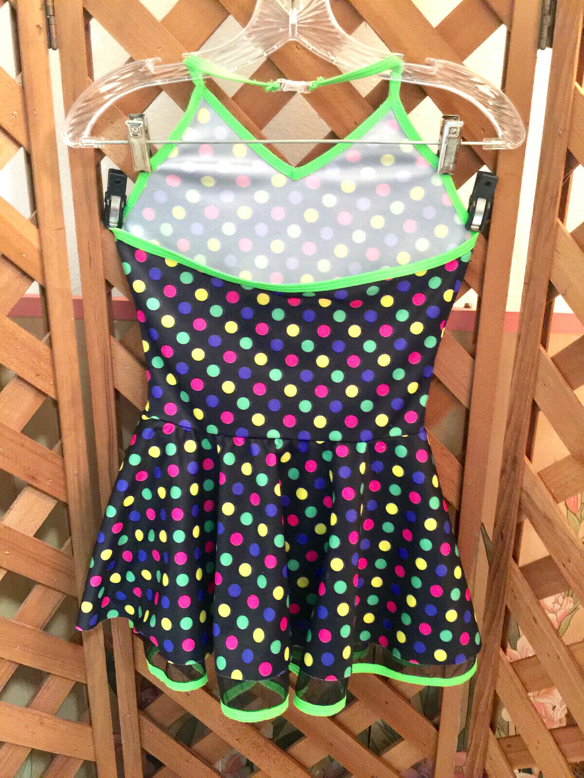EUC-CURTAIN CALL DANCE RECITAL POLKA DOT LEOTARD HALTER DRESS GIRLS SZ LARGE