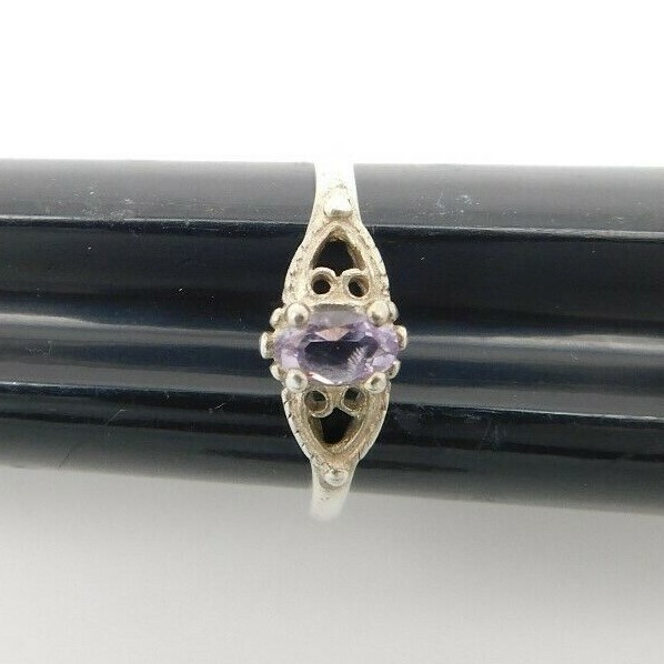 как выглядит 925 Sterling Silver Oval Prong Set Amethyst Ring Size 7 R104 фото
