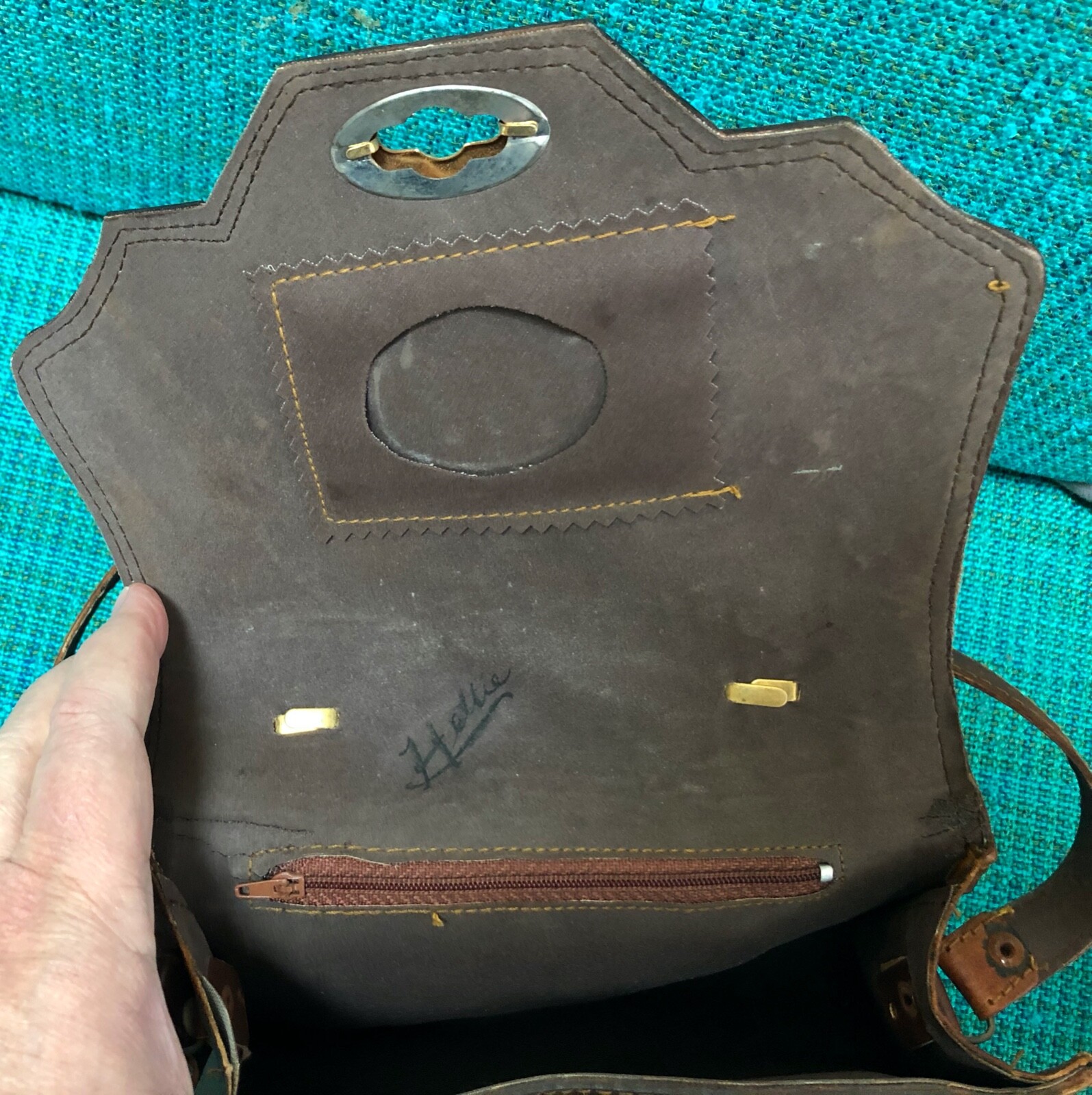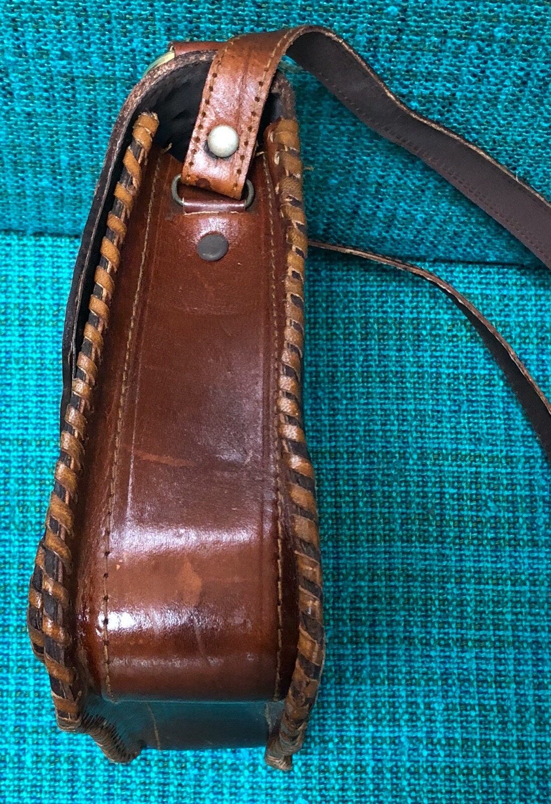 как выглядит LEATHER TOOLED PURSE BY DINGSHENG / PARIS, VINTAGE, BROWN, SHOULDER STRAP/HANDLE фото