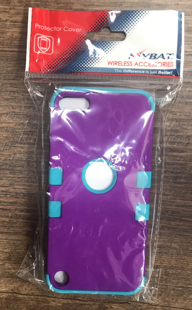 Turquoise/Purple High Impact Soft Rubber Hybrid Case For iPod Touch 5th Gen