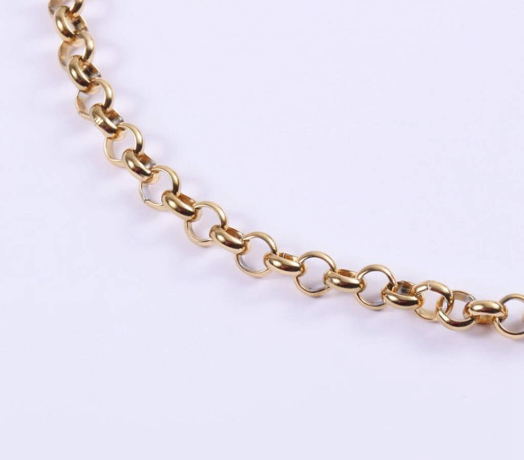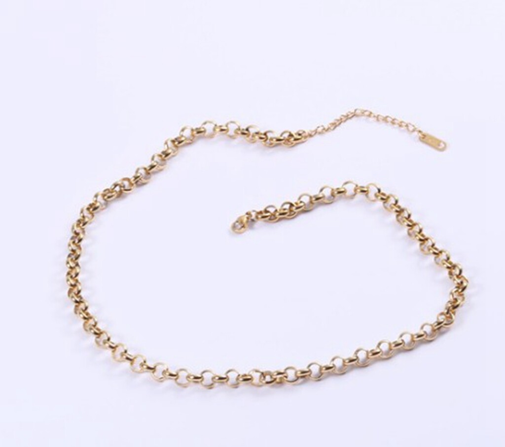 BF Style Titanium Stainless Steel Gold Circle Thick Chain Necklace 16.2-18.2