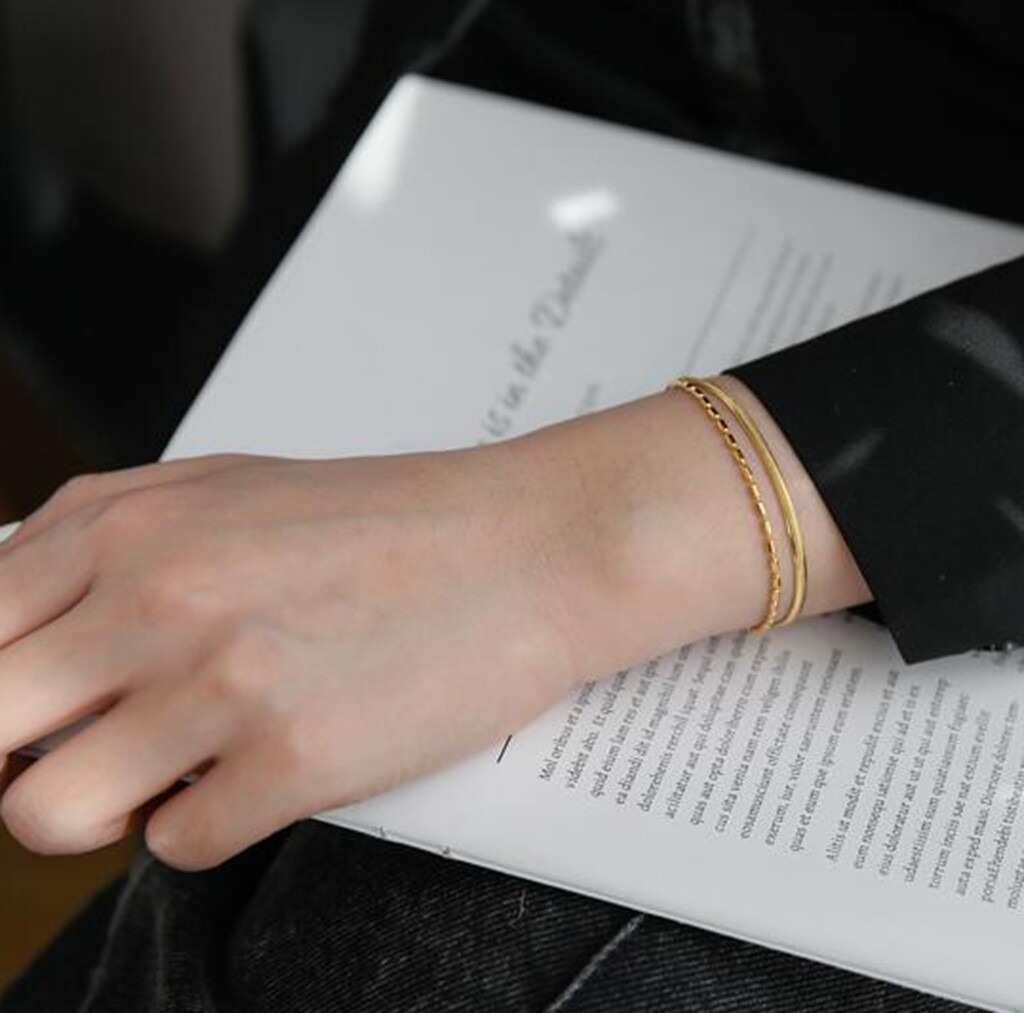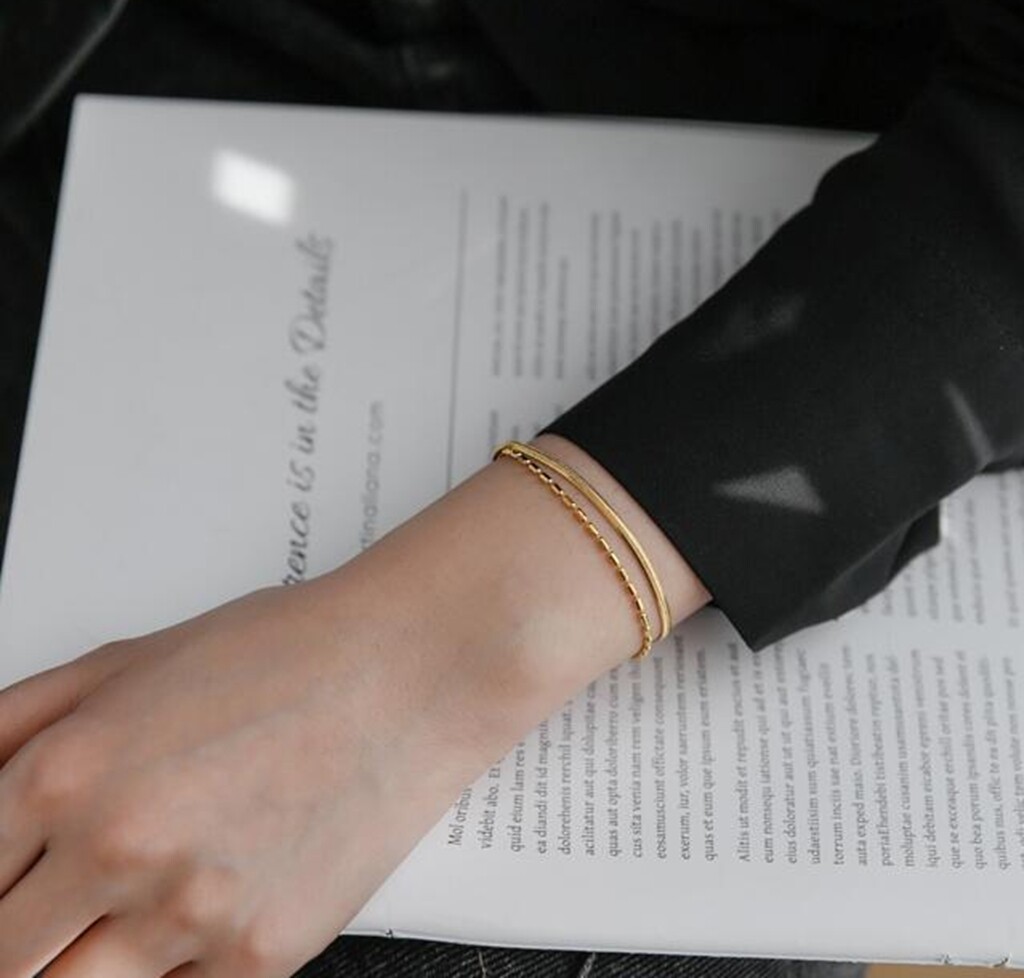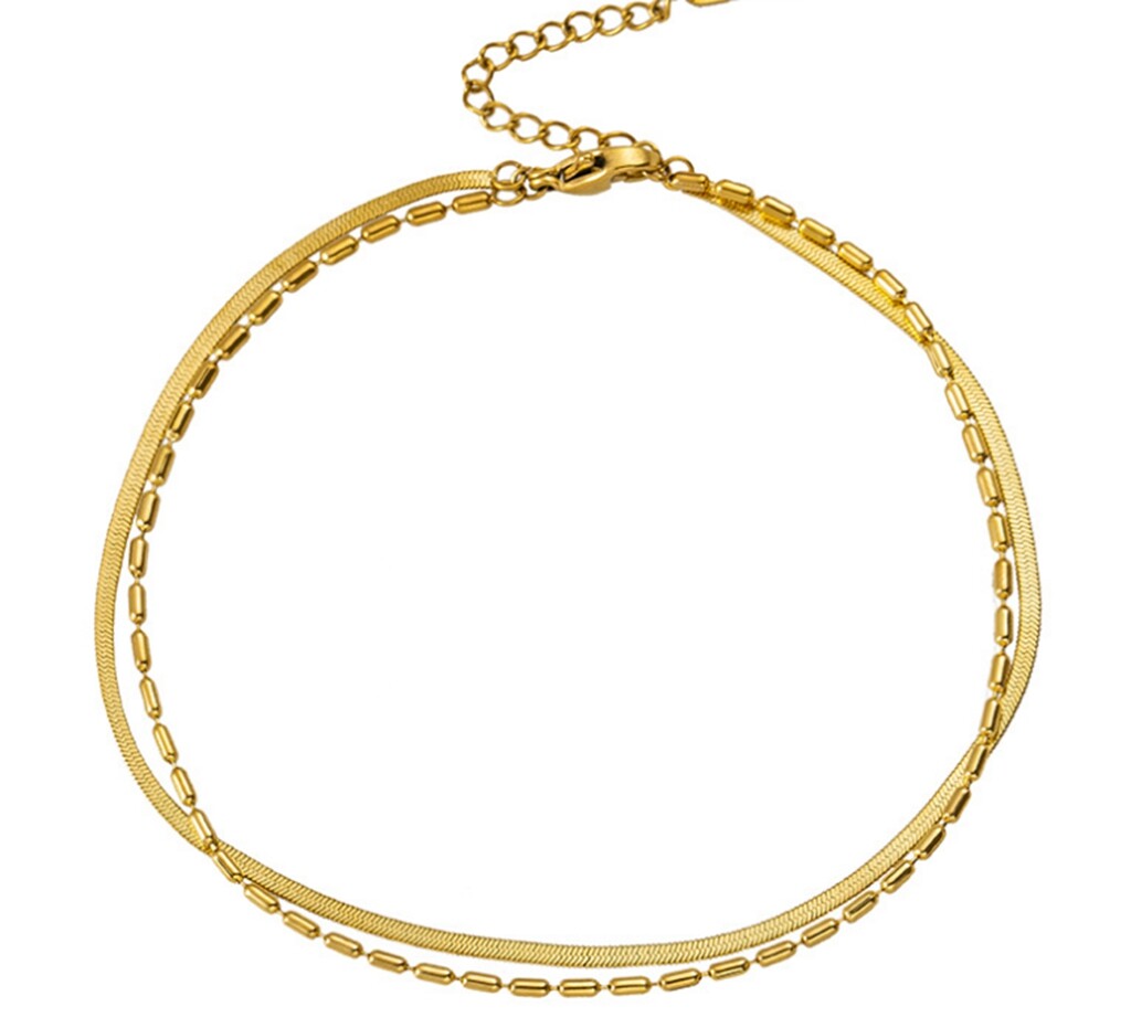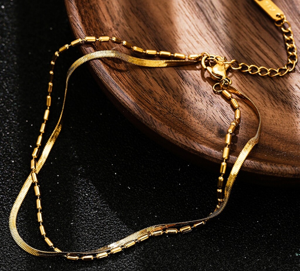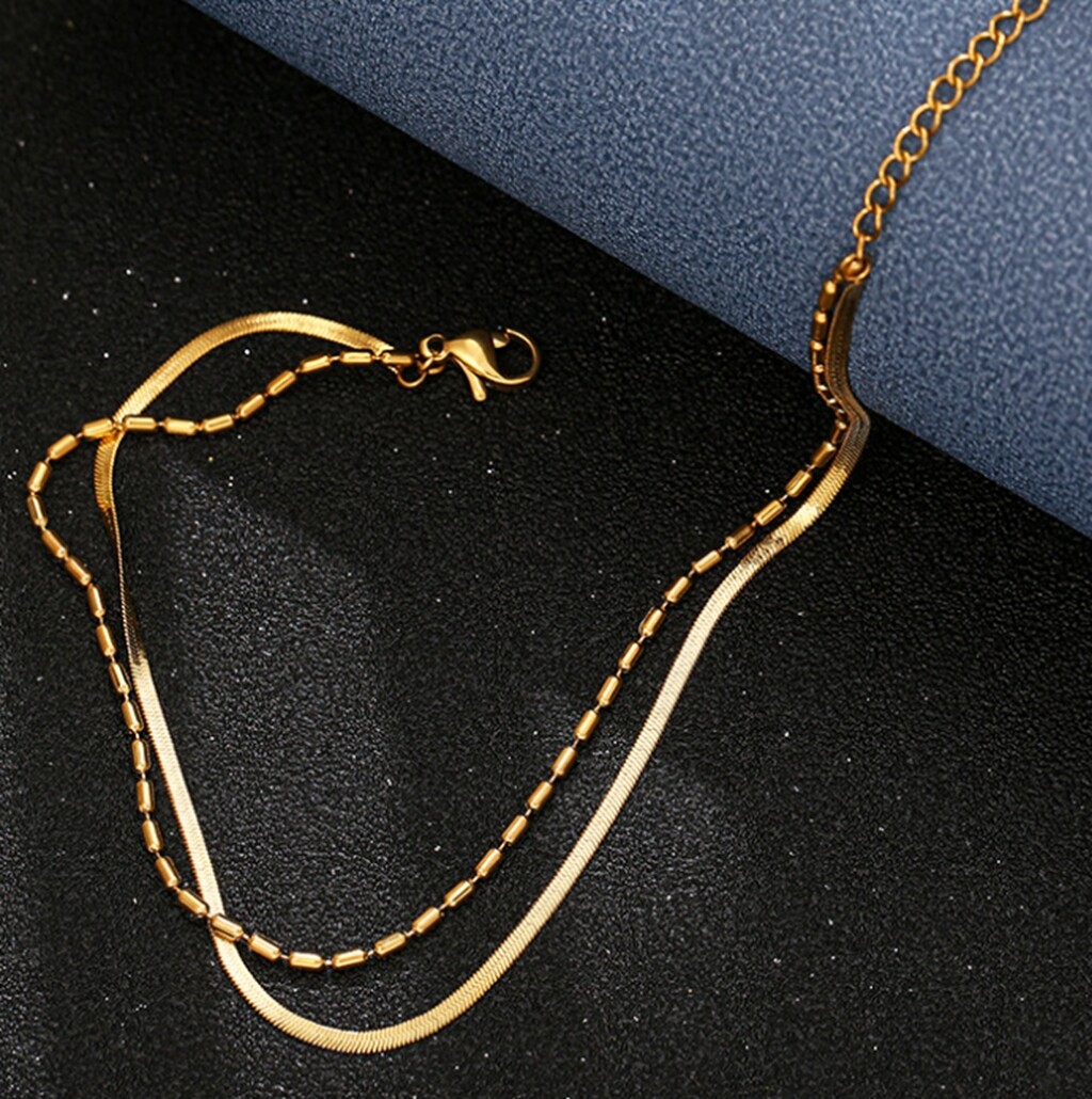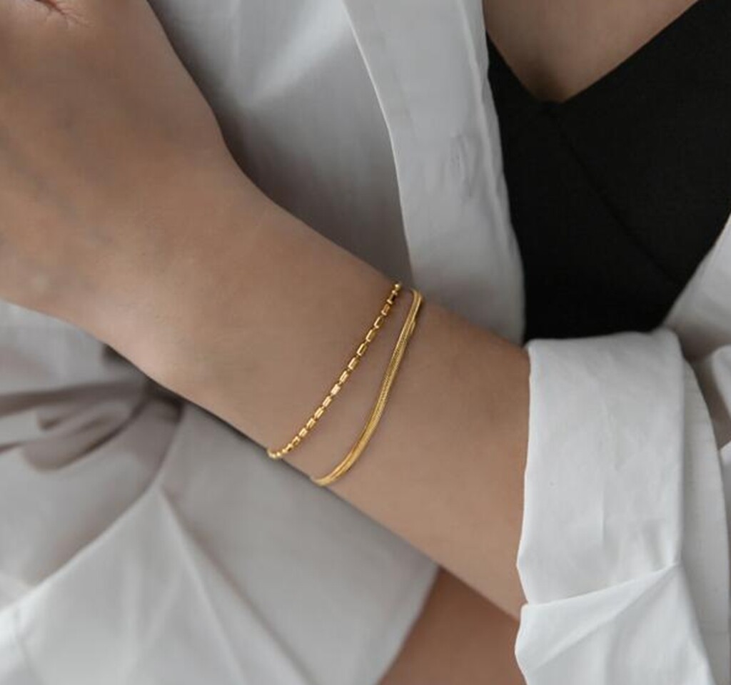 Women Titanium Stainless Steel Gold Bar Herringbone Double Chain Bracelet 6-8