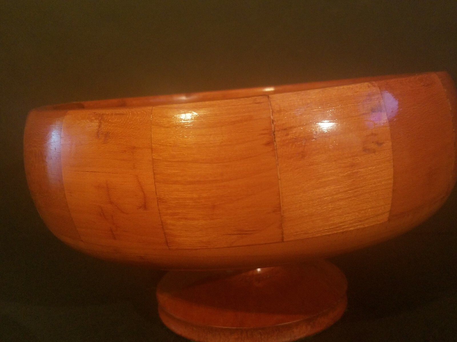 VTG Handcrafted Solid Wood 5-1/4 H 8-7/8 Dia Round Lathe Turned Pedestal Bowl