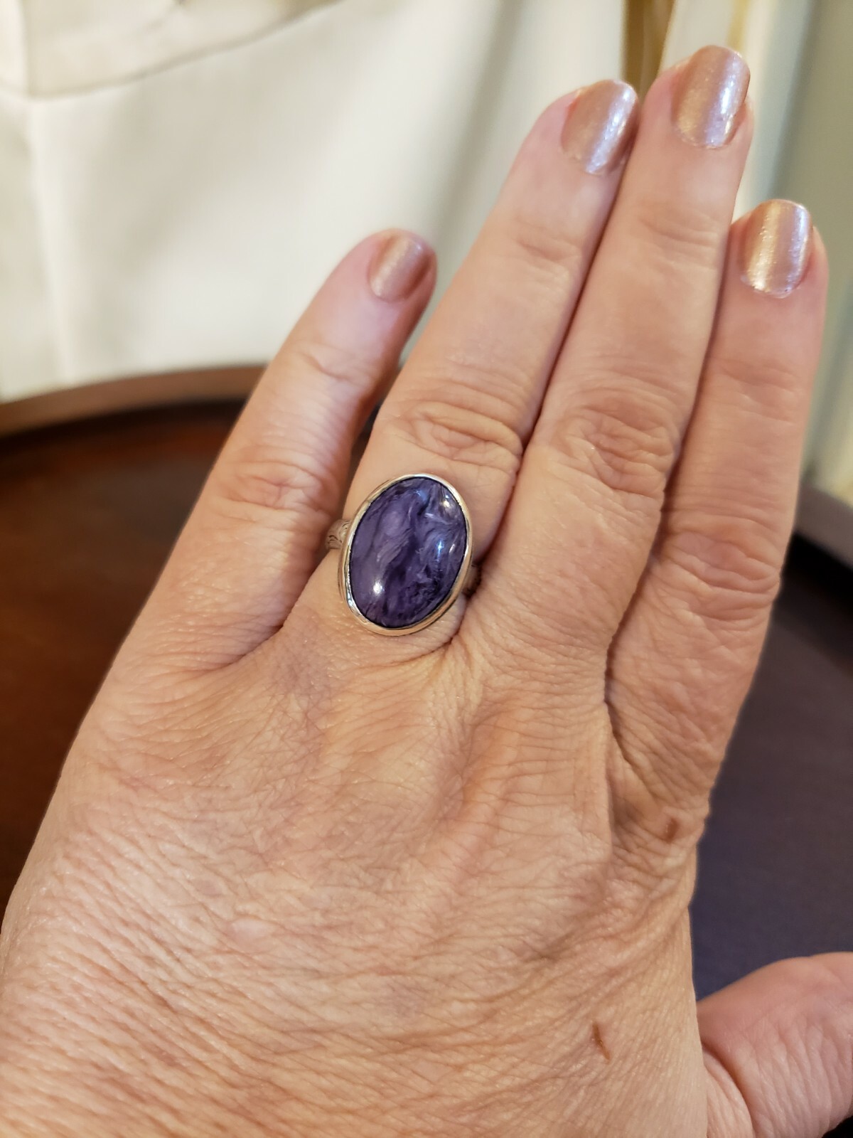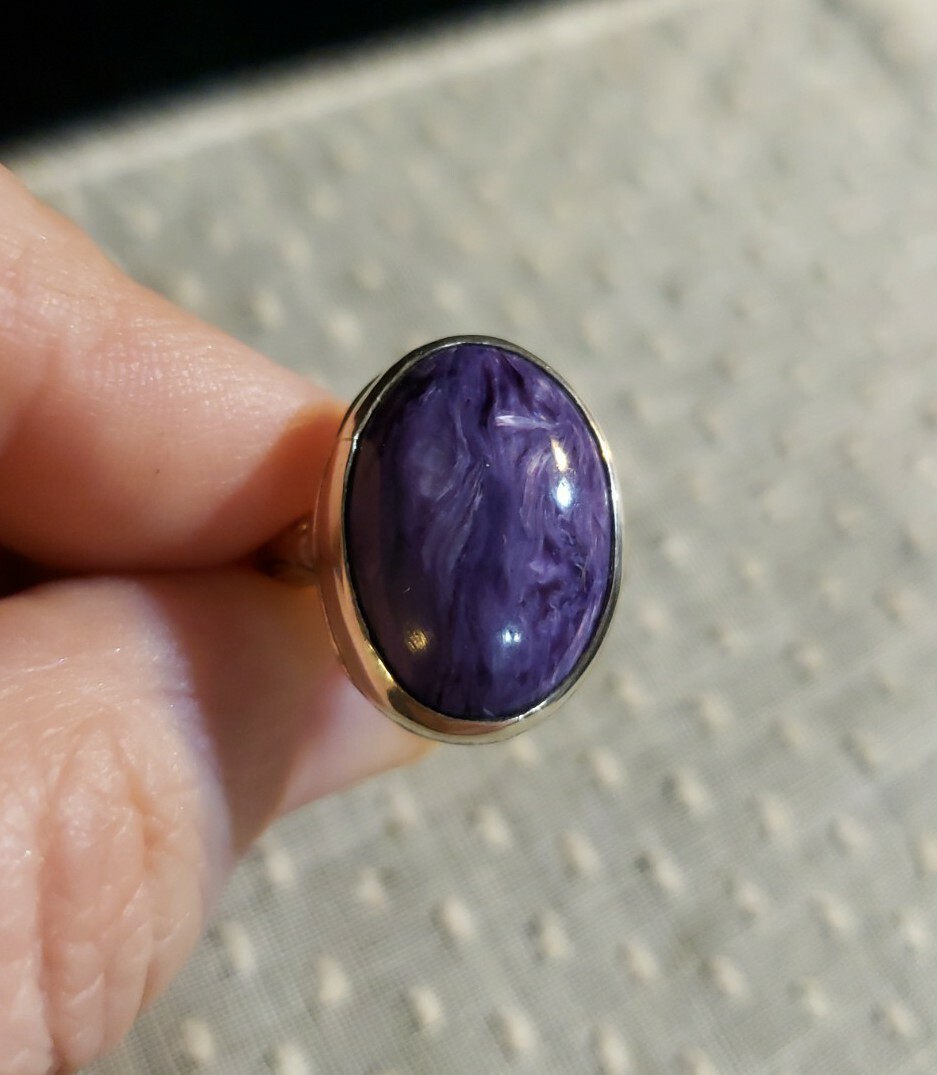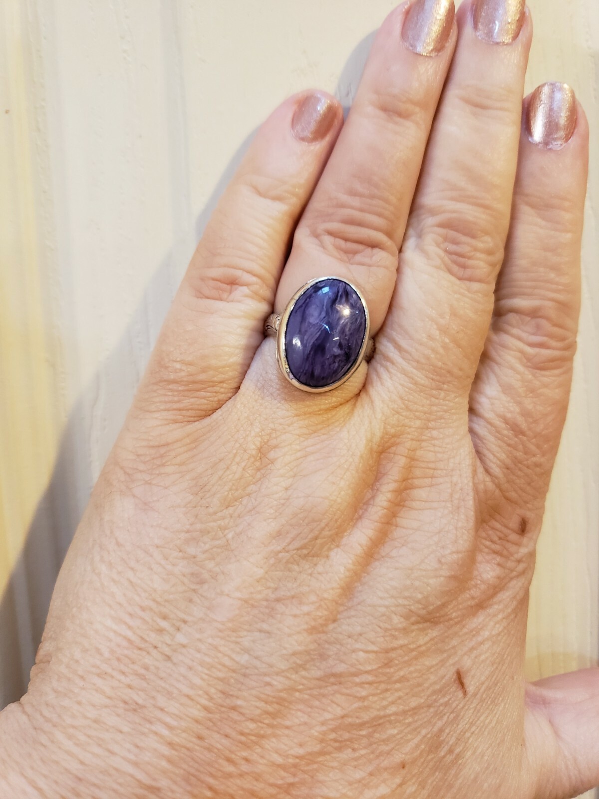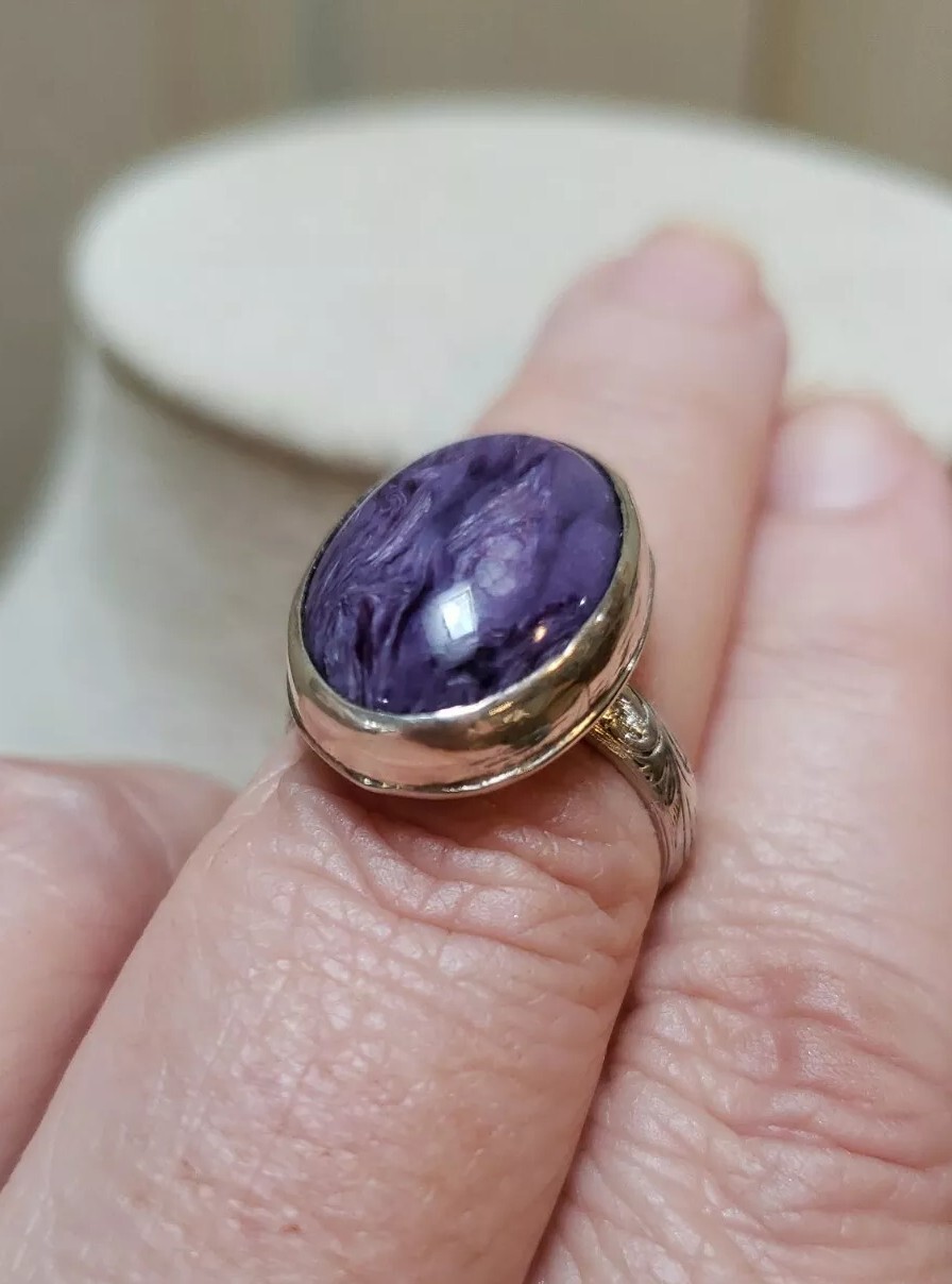 Sterling Silver RUSSIAN CHAROITE Ring, Handcrafted, Size 7, Natural Untreated
