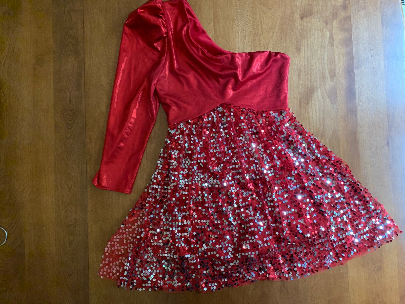 Kelle dance costume, one-piece, size Teen, K1T1 red sequin