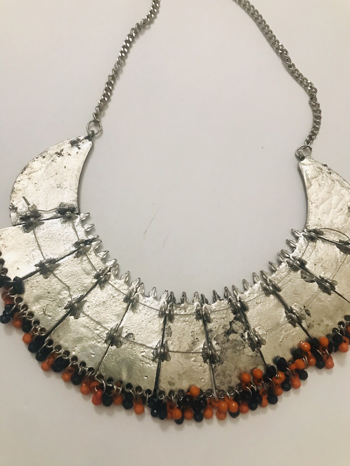 как выглядит Indian Ethnic Oxidised Silver Orange Black Beads Tribal Choker Earrings Set фото