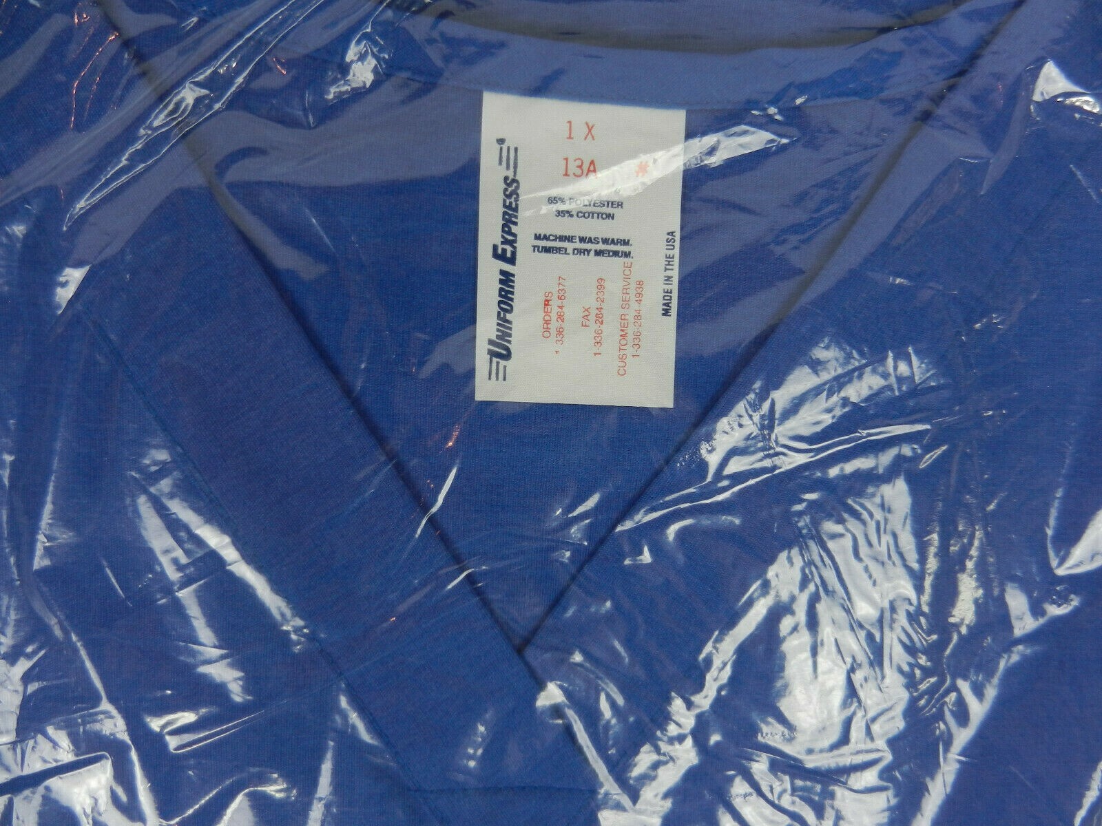 как выглядит Uniform Express 1X Womens Scrubs Top Blue SS V-Neck With Pockets New In Pkg фото
