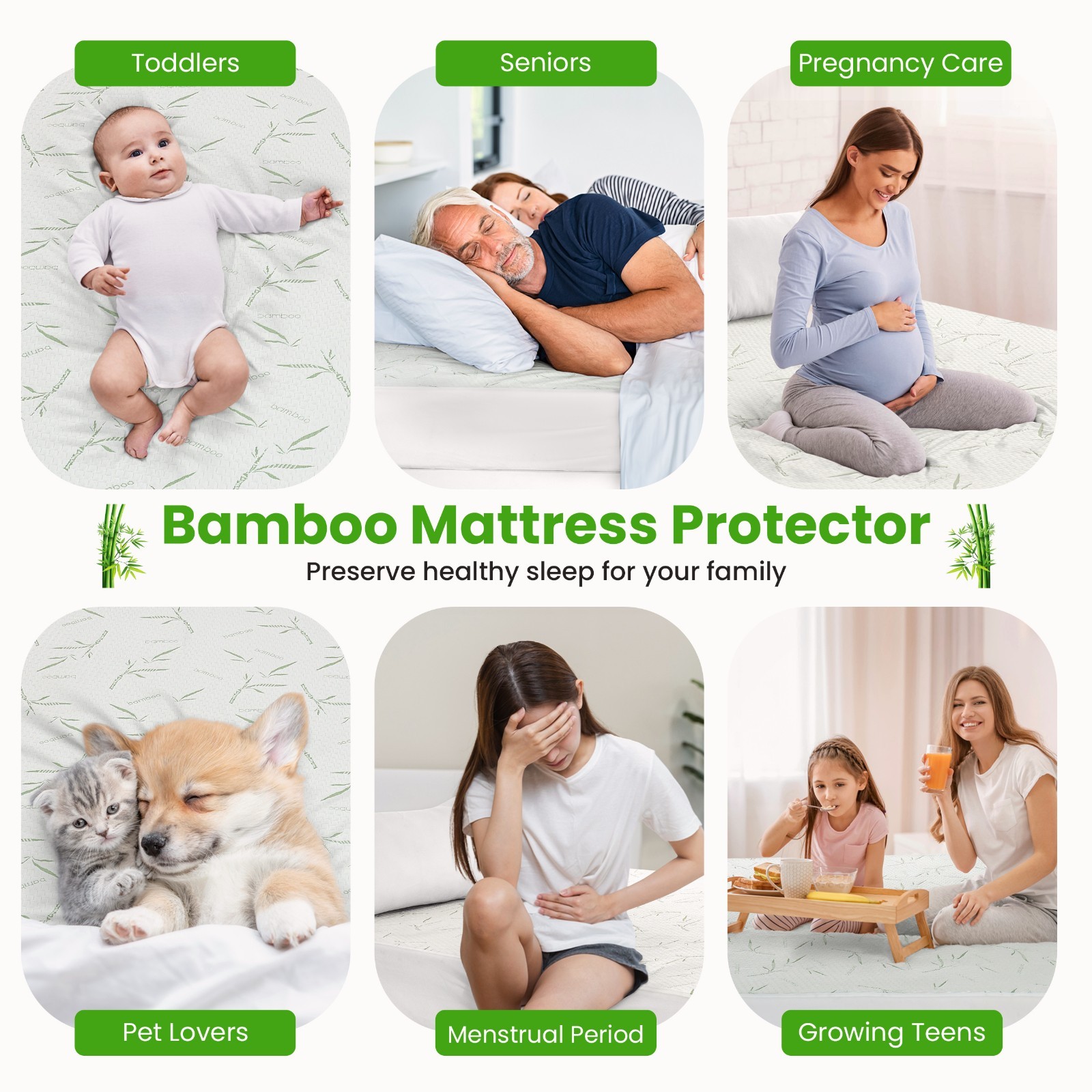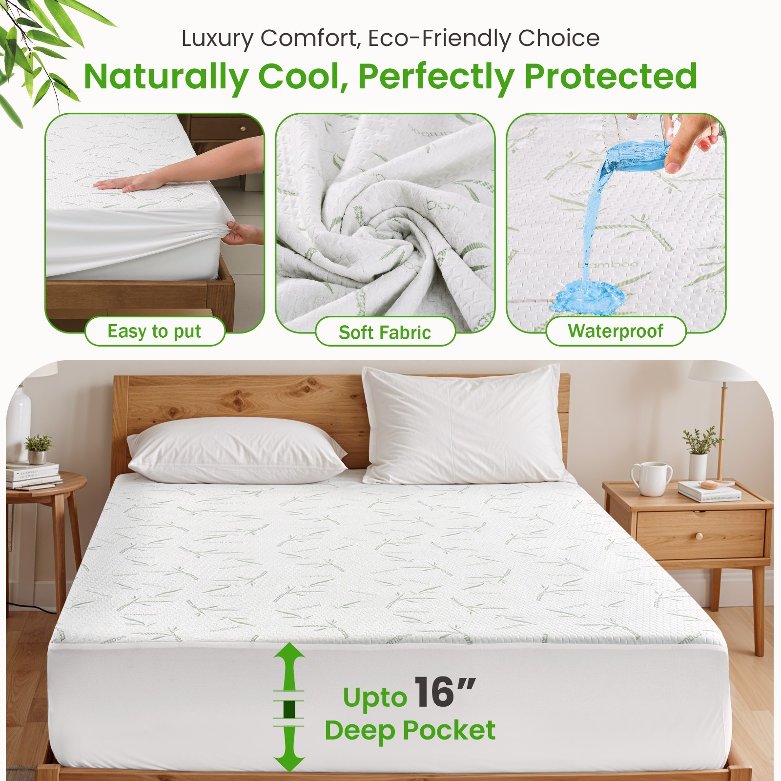 Bamboo Mattress Protector Hypoallergenic Breathable Waterproof Mattress Cover