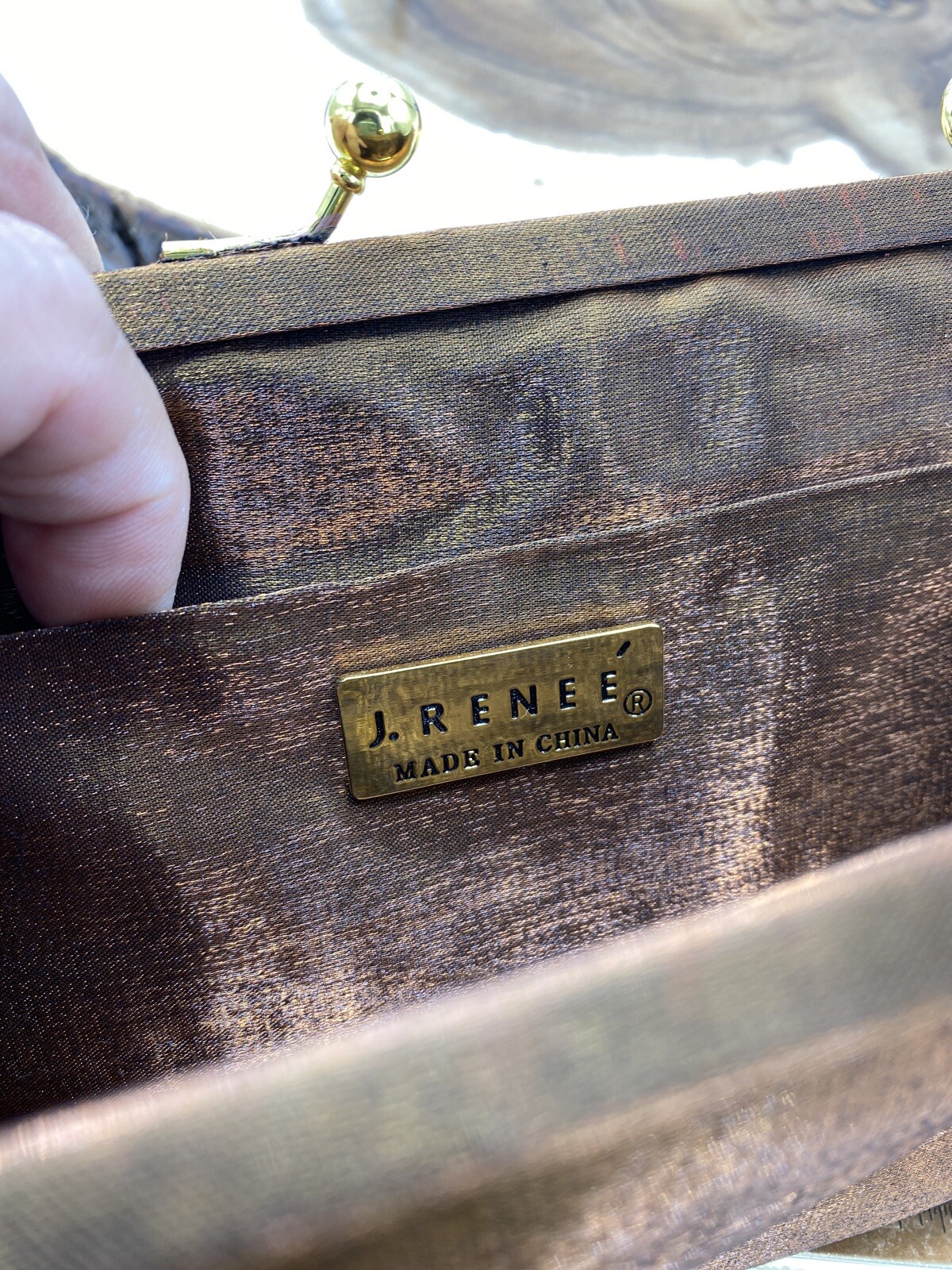 как выглядит Vintage J. Renee Copper BronzeHandbag Purse Clutch With Long Removable Strap фото