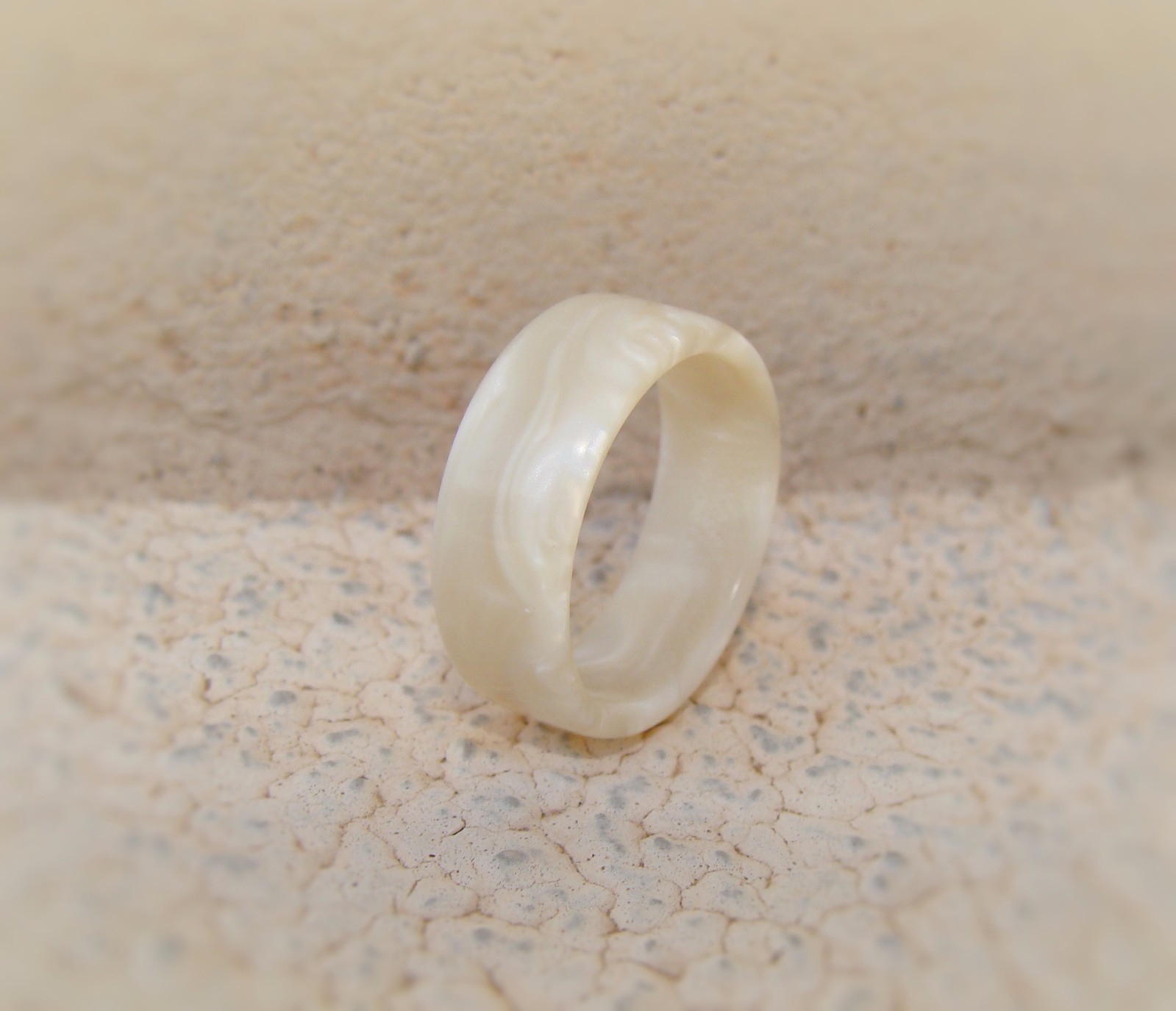White Pearl Acrylic Resin Ring Men's or Women's Handmade to Order
