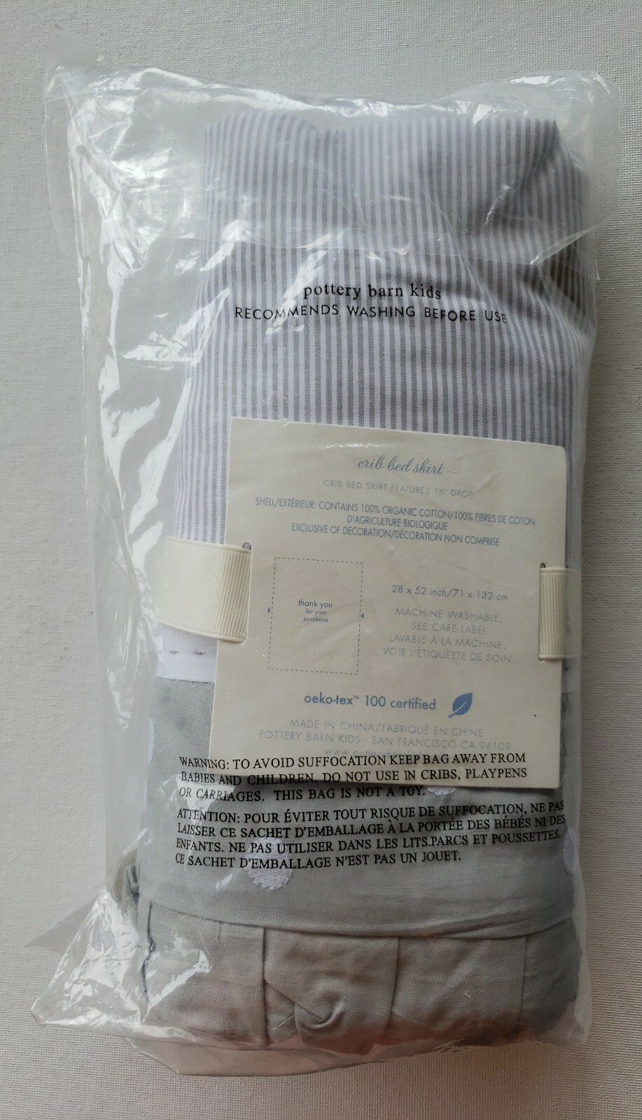 как выглядит Pottery Barn Kids Taylor Crib Skirt Gray Stripe Polka Dot NEW фото