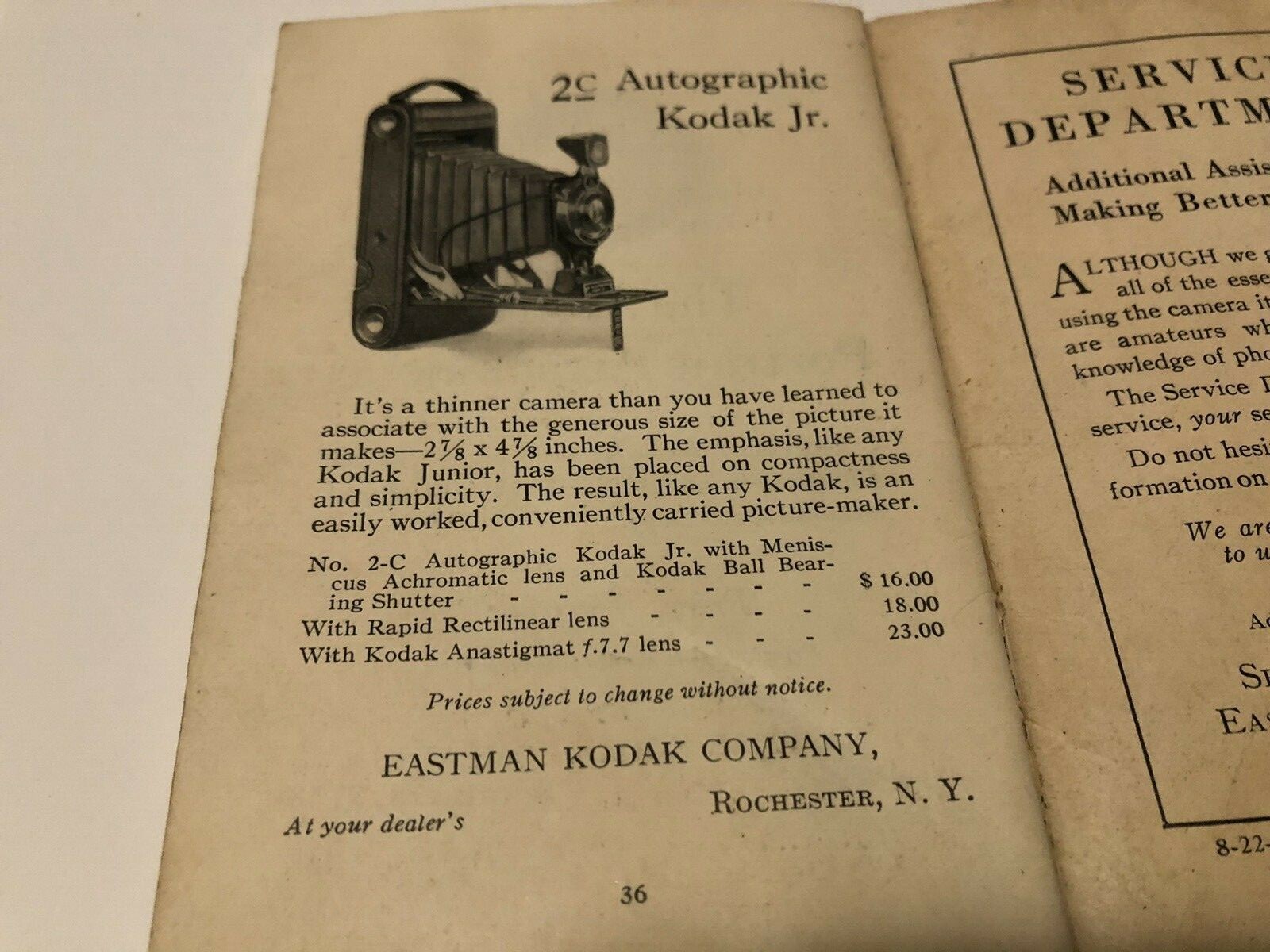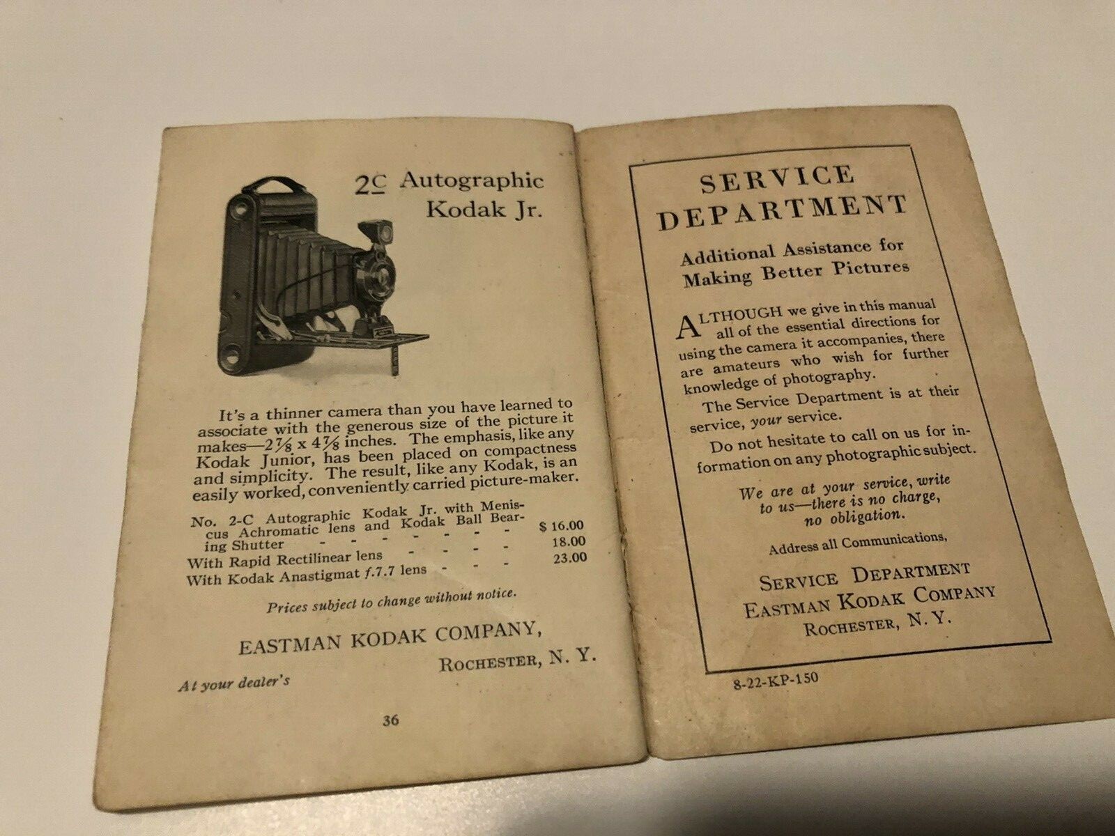 1922 EASTMAN KODAK Nos 2a 2C 3 BROWNIE Camera Manual Instruction Book 36 pg.