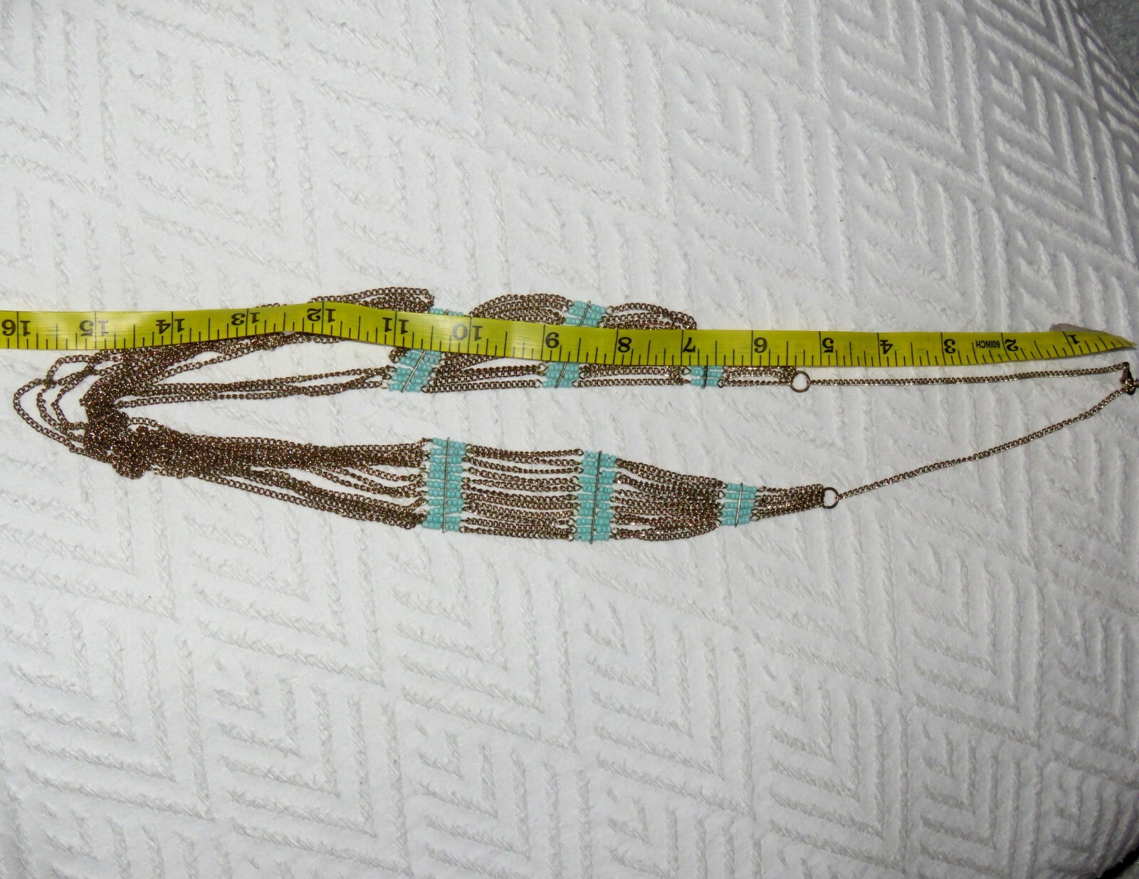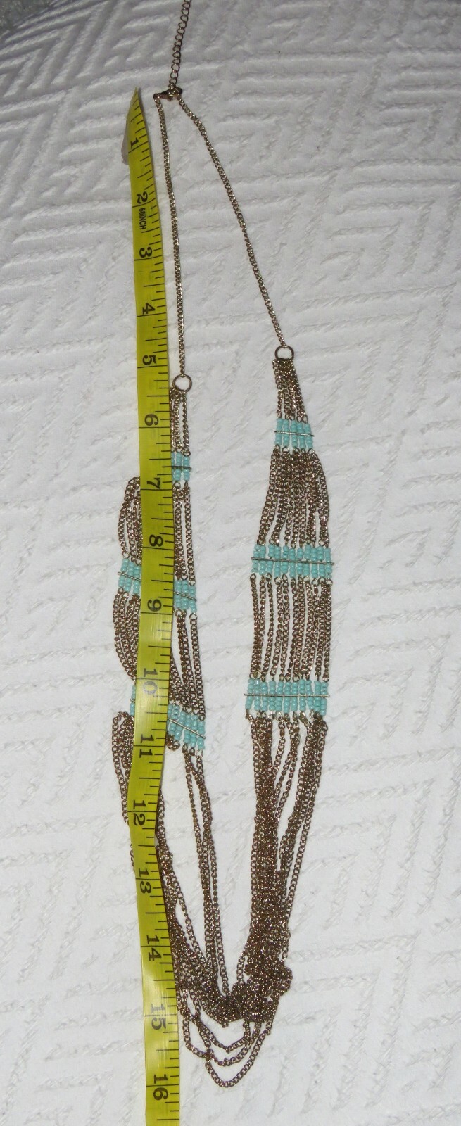Goldtone Multi Strand Statement Necklace with Turquoise Color Beads