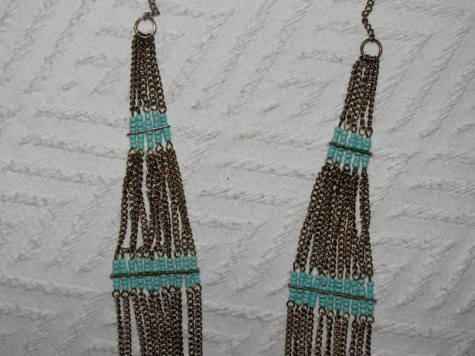 как выглядит Goldtone Multi Strand Statement Necklace with Turquoise Color Beads фото