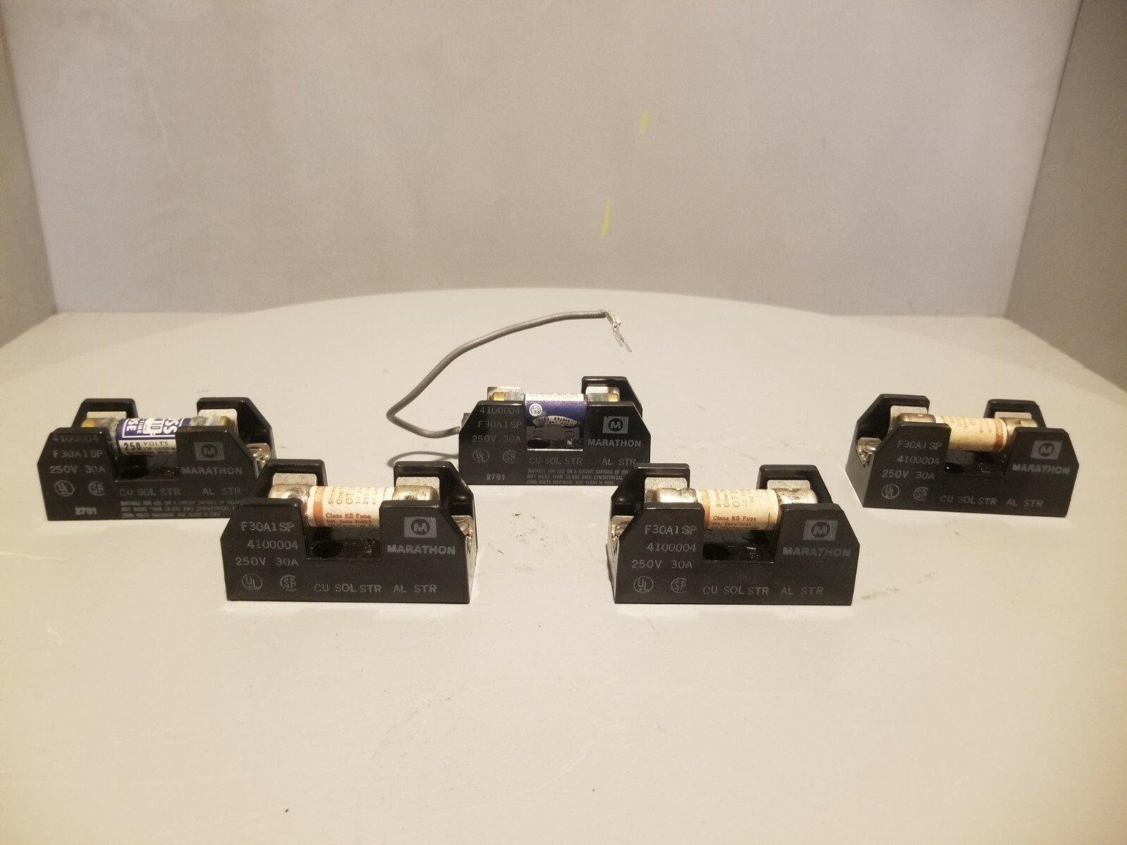 Lot of 5 Marathon Fuseholder, 250V, 30A, F30A1SP, 4100004