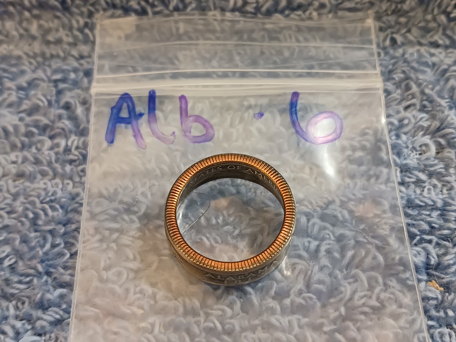 Alabama Handcrafted Washington Quarters coin ring, size 6 2003