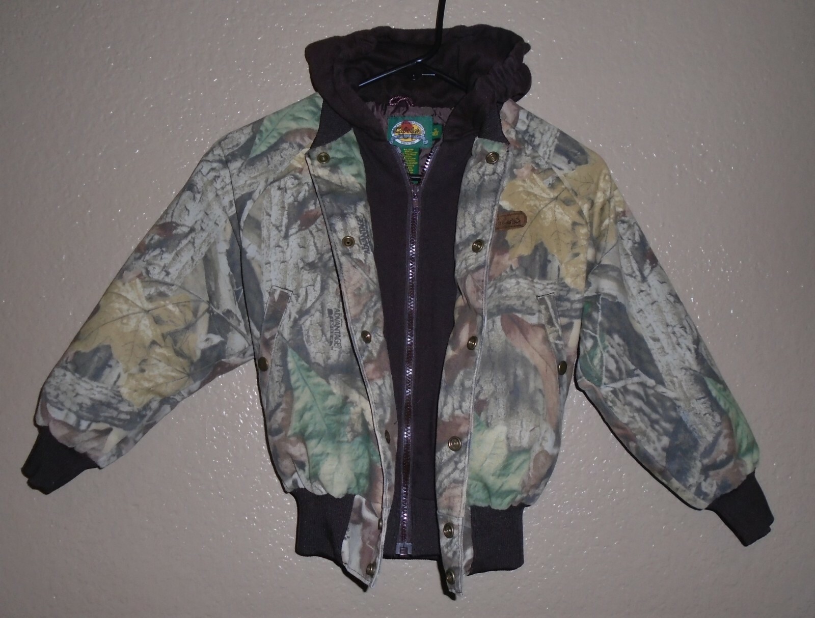 как выглядит Cabelas Advantage Timber Hooded Full Zip Snap Up Jacket Coat Boys SMALL EUC фото