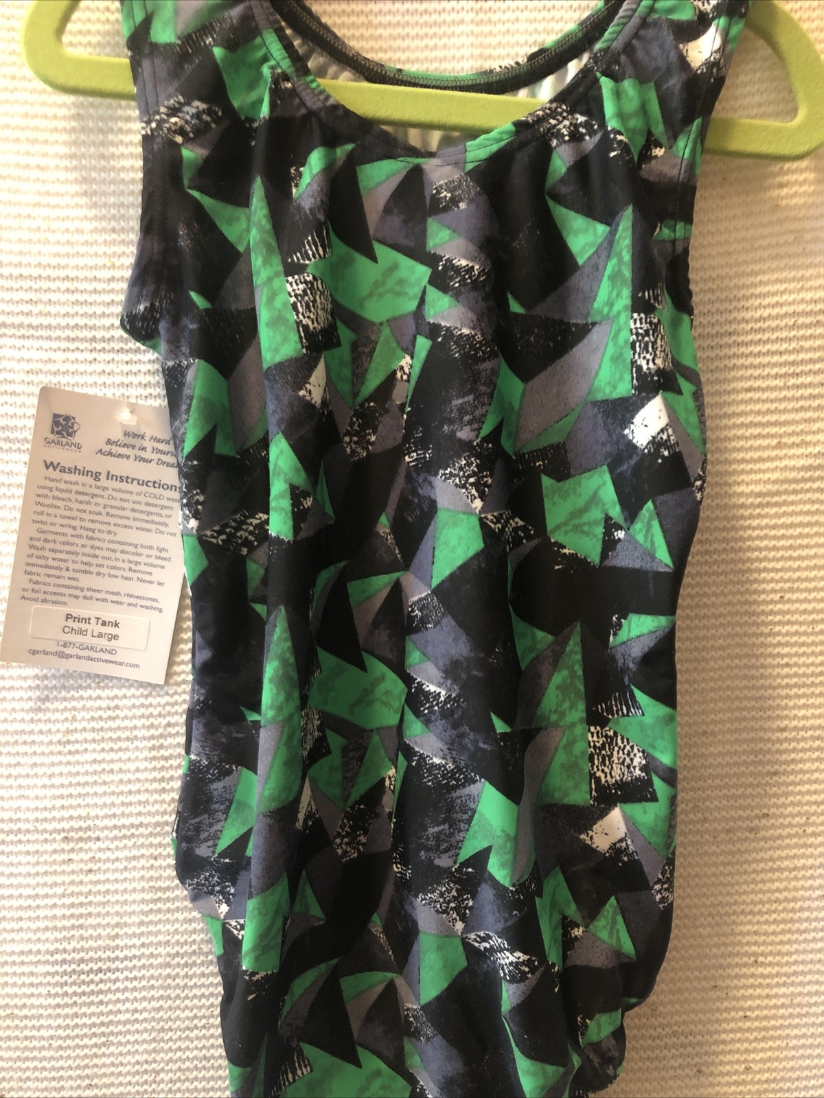 NWT GARLAND gymnastics dance LEOTARD Child Large GREEN BLACK geometric