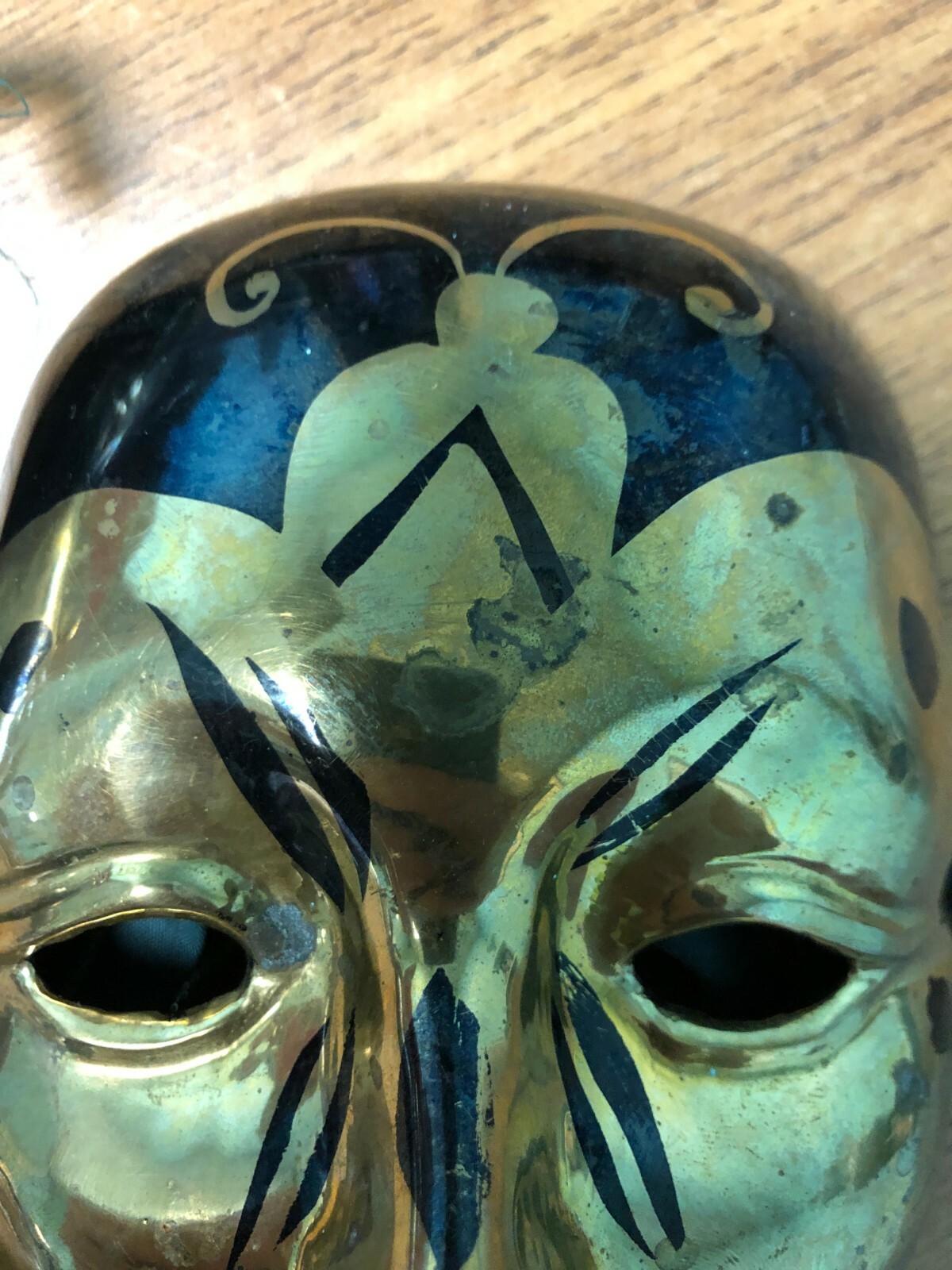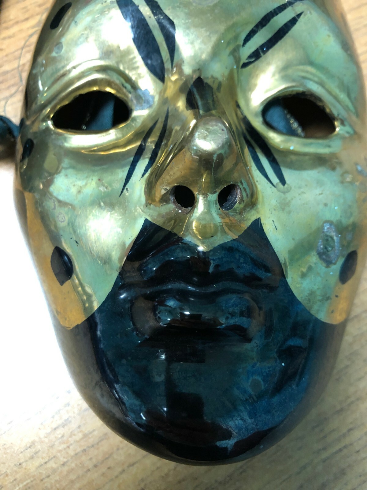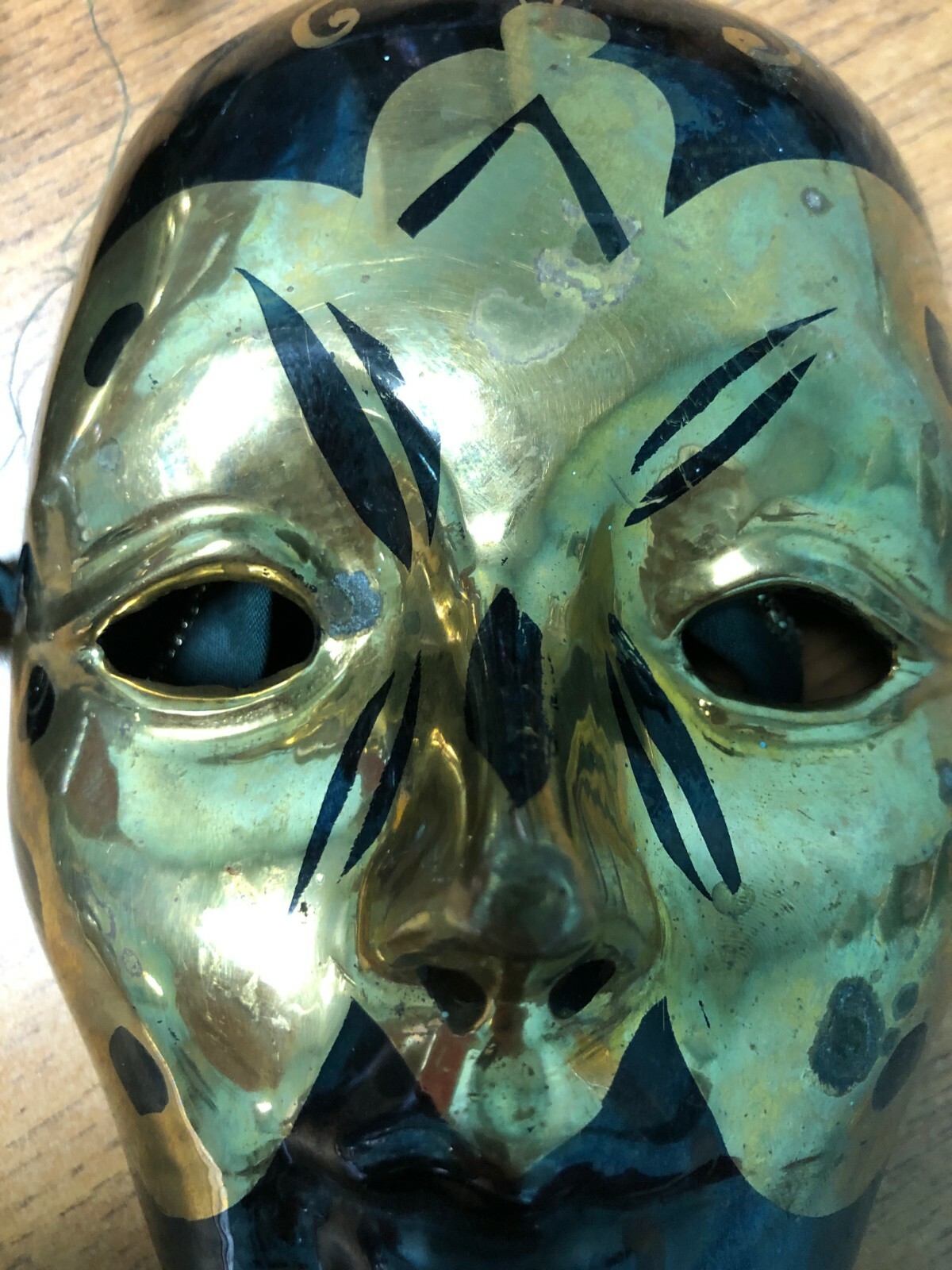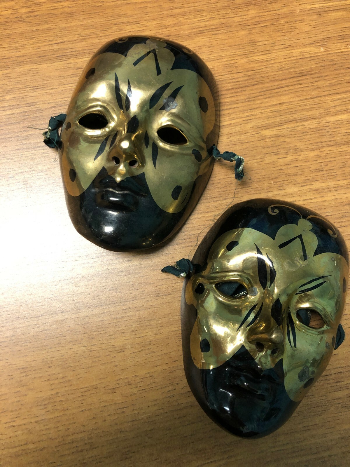 как выглядит PAIR OF 2 VINTAGE VENETIAN HAND PAINTED MASKS WALL DECOR BLACK GOLD MARDI GRAS фото