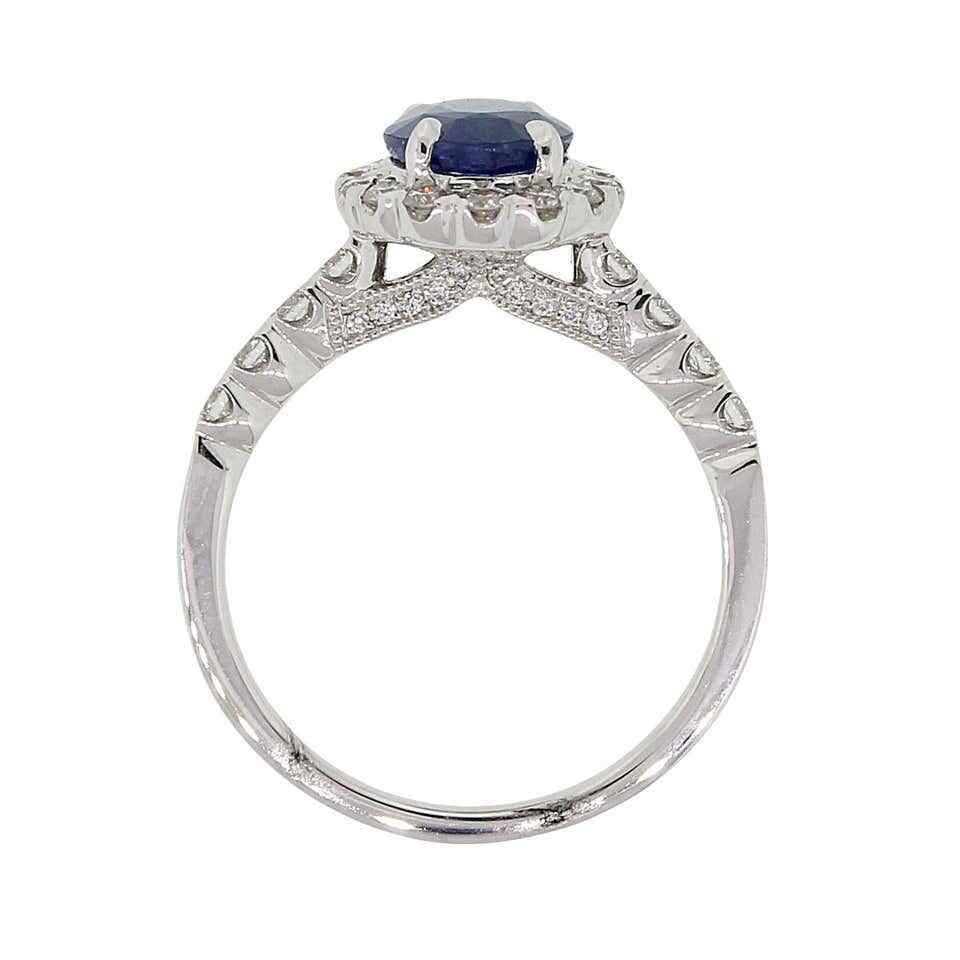 как выглядит Simulated Oval Blue 2.50CT Sapphire With Round White CZ Halo Simple Women