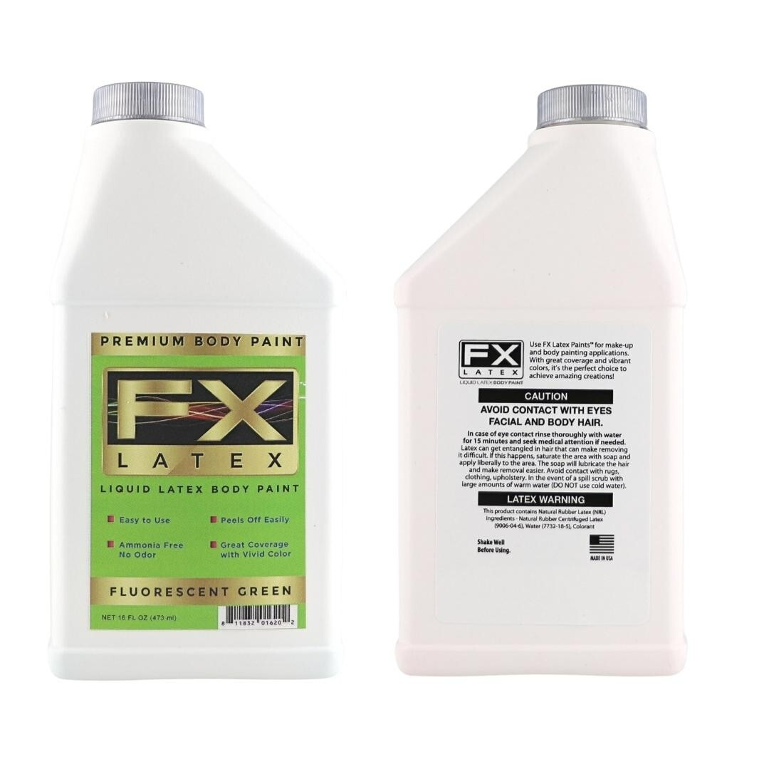 FX Latex Fluorescent Green - 16 oz - Face and Body Paint, GLOWS UNDER BLACKLIGHT